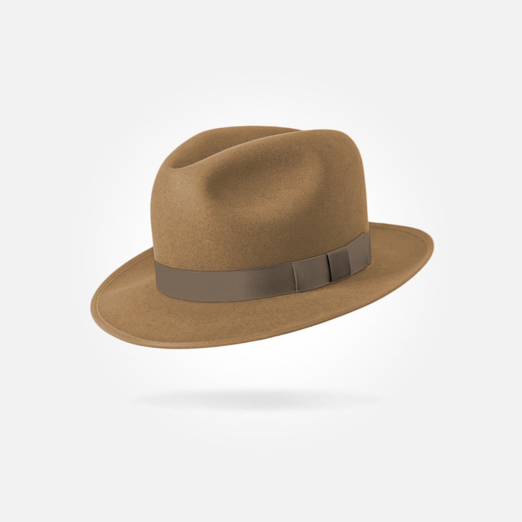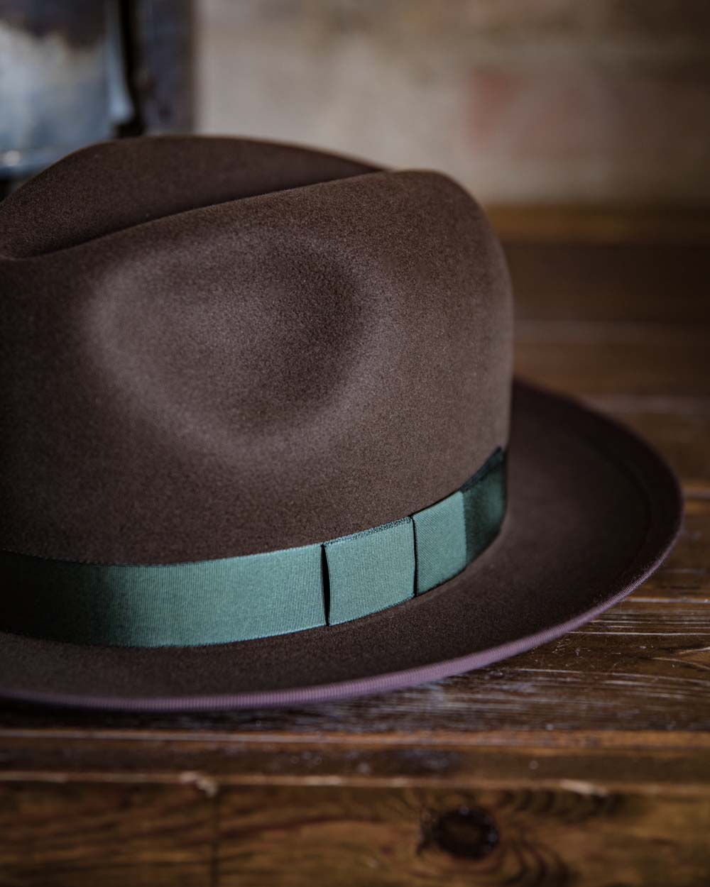 This hat is made from the best materials available. The felt is what we call dress weight, it is soft, pliable and super smooth to the touch.It comes in a 50X beaver/hare blend and a pure 100X beaver fur felt.