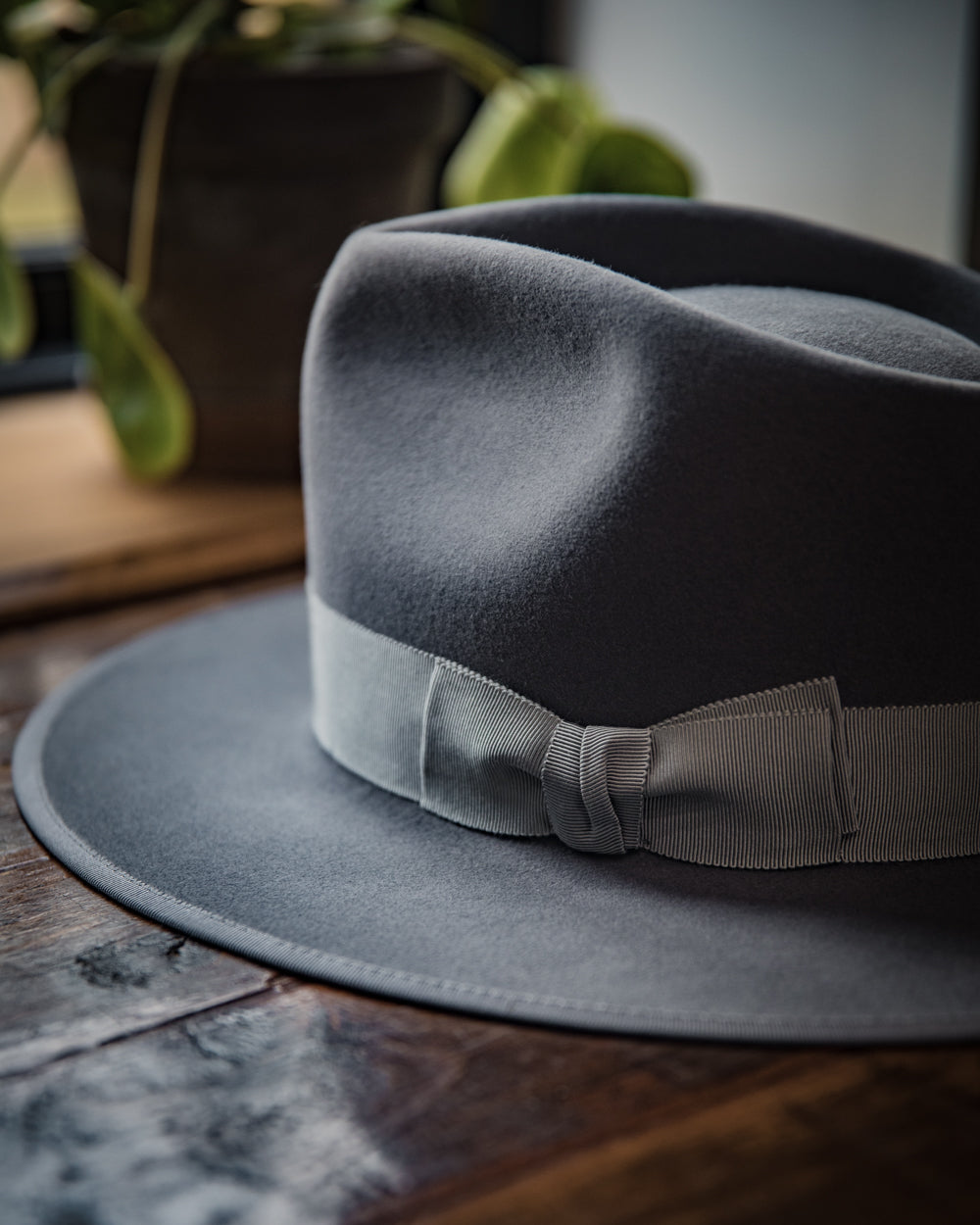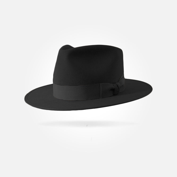 It features a 38 mm modern grosgrain hatband with a double back bow.