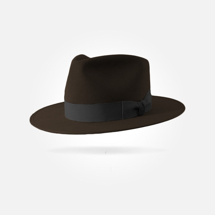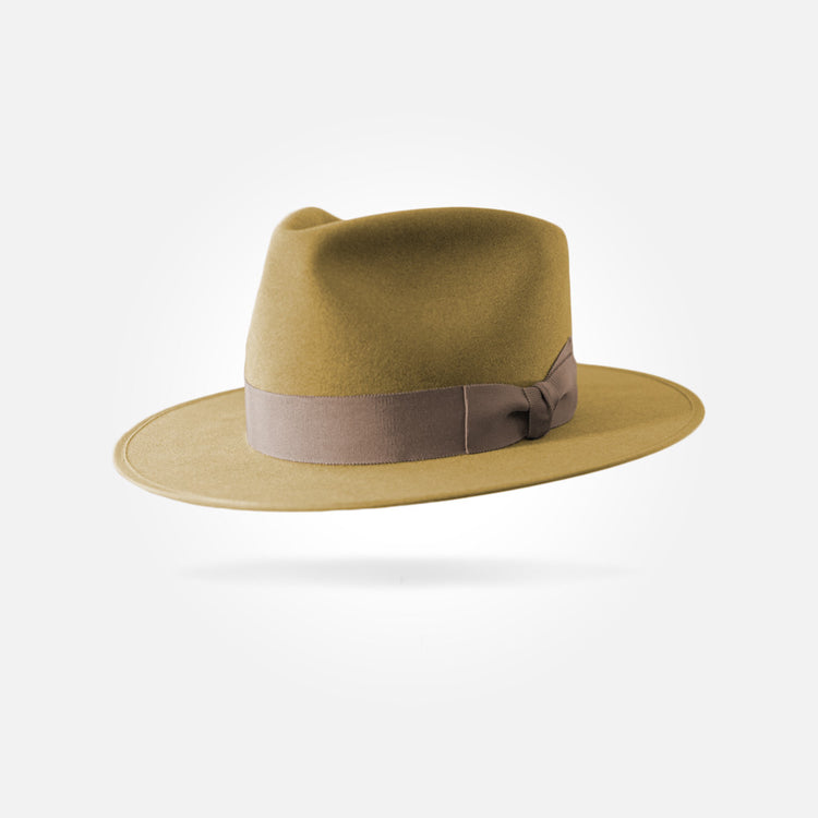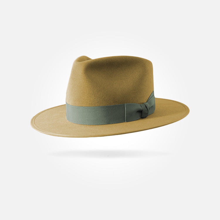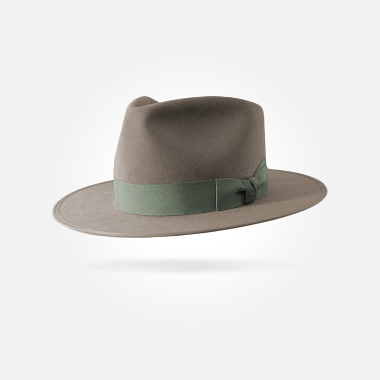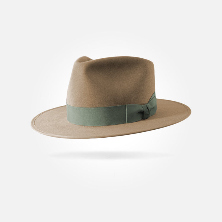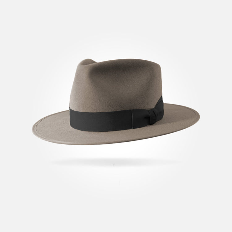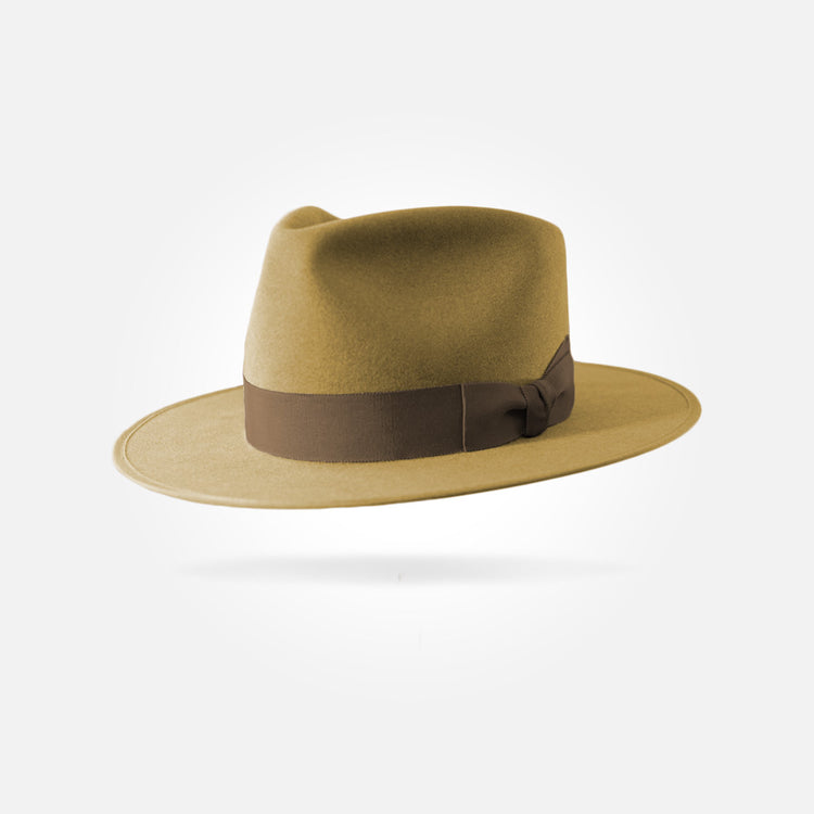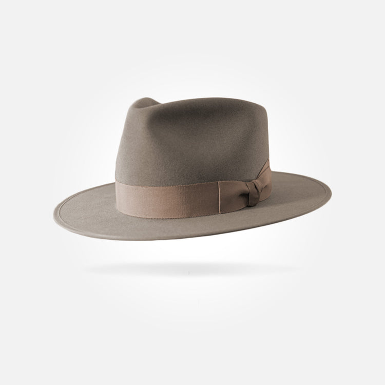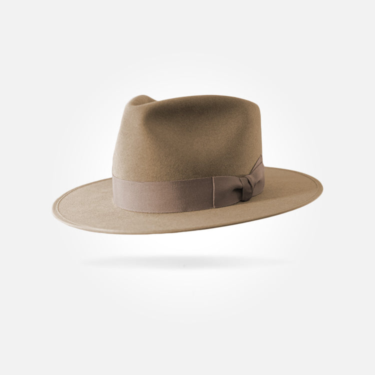 This hat is made from the best materials available. The felt used for this hat is what we call western weight. It has a sturdy, rigid brim and a smooth, pliable crown. It comes in a 50X beaver/hare blend and a pure 100X beaver fur felt.