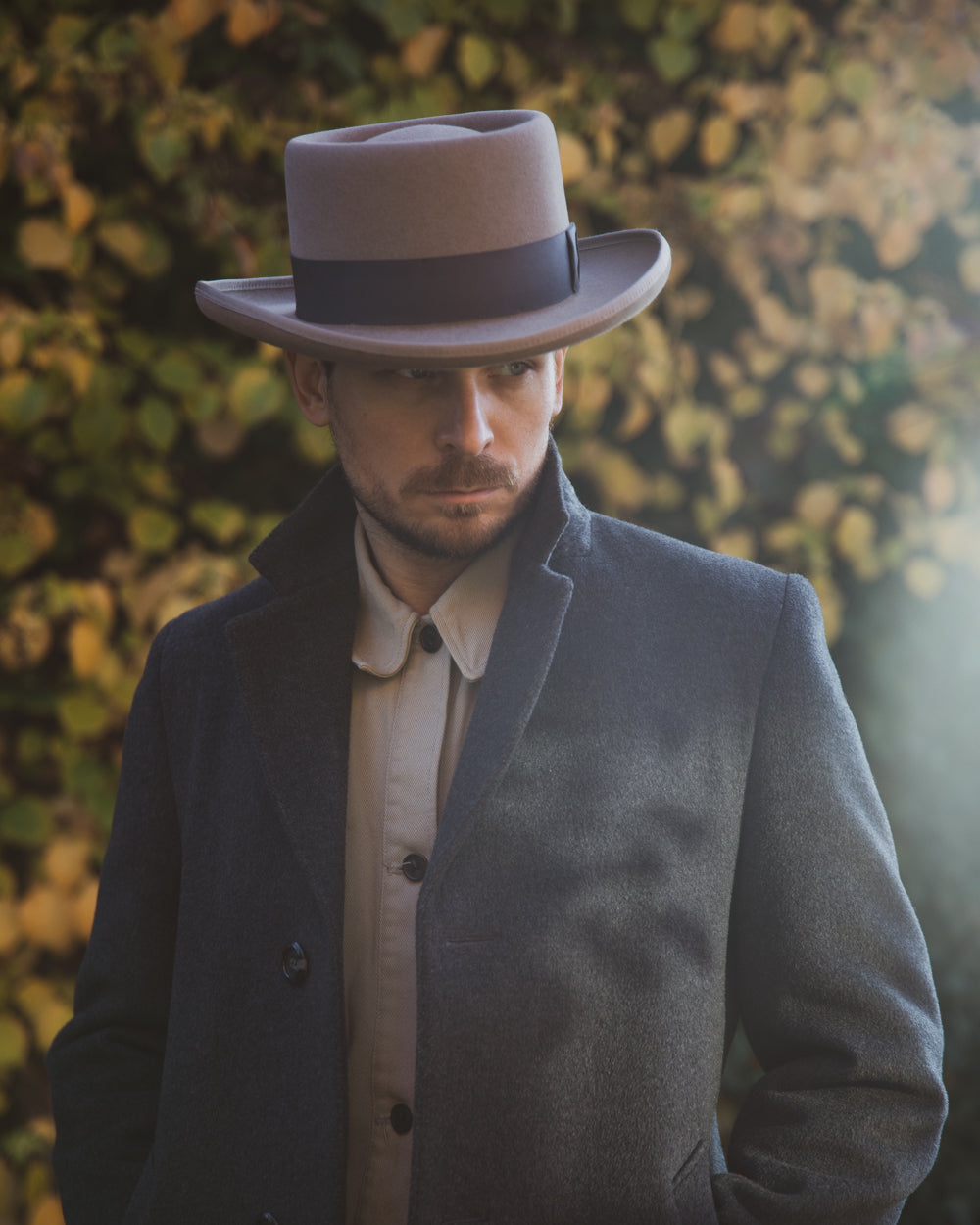 It comes in a 50X beaver/hare blend and a pure 100X beaver fur felt.