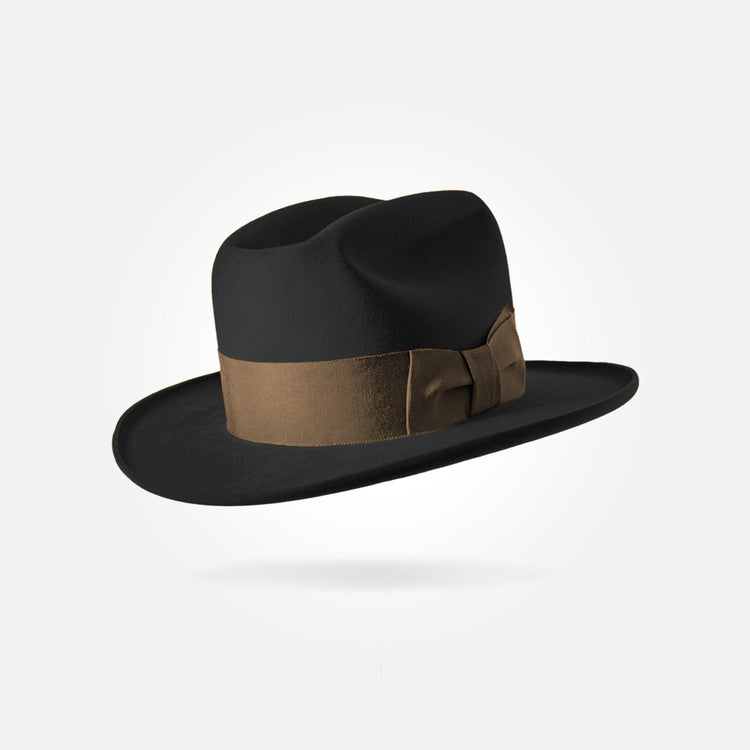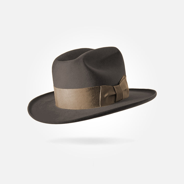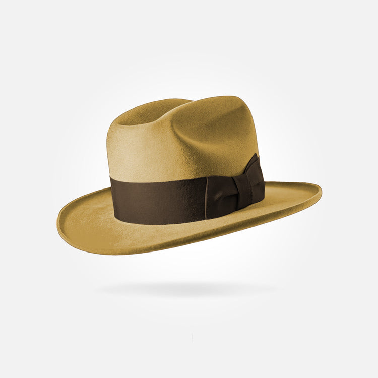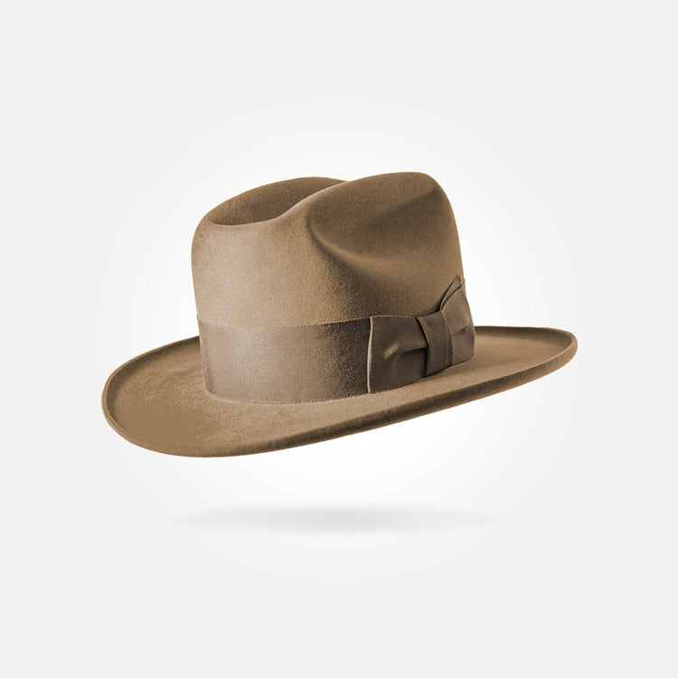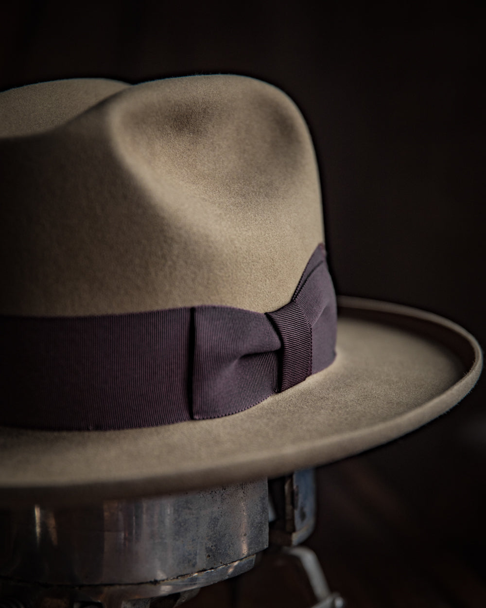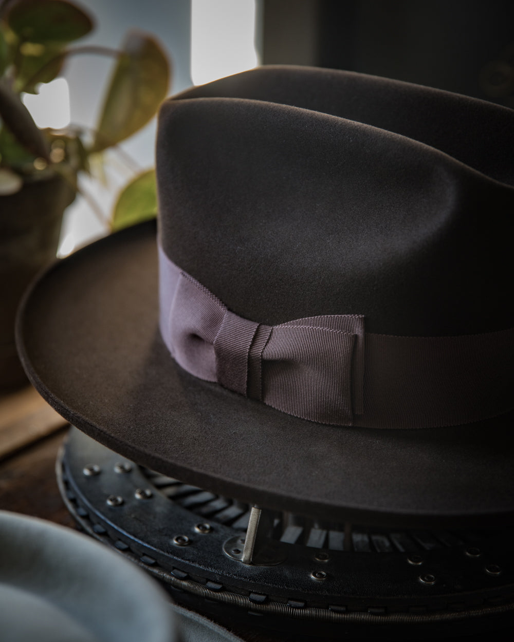 This hat is made from the best materials available. The felt used for this hat is what we call western weight. It has a sturdy, rigid brim and a smooth, pliable crown. It comes in a 50X beaver/hare blend and a pure 100X beaver fur felt.