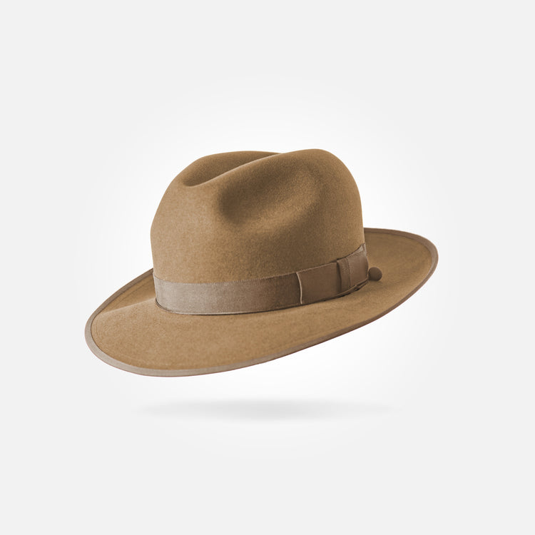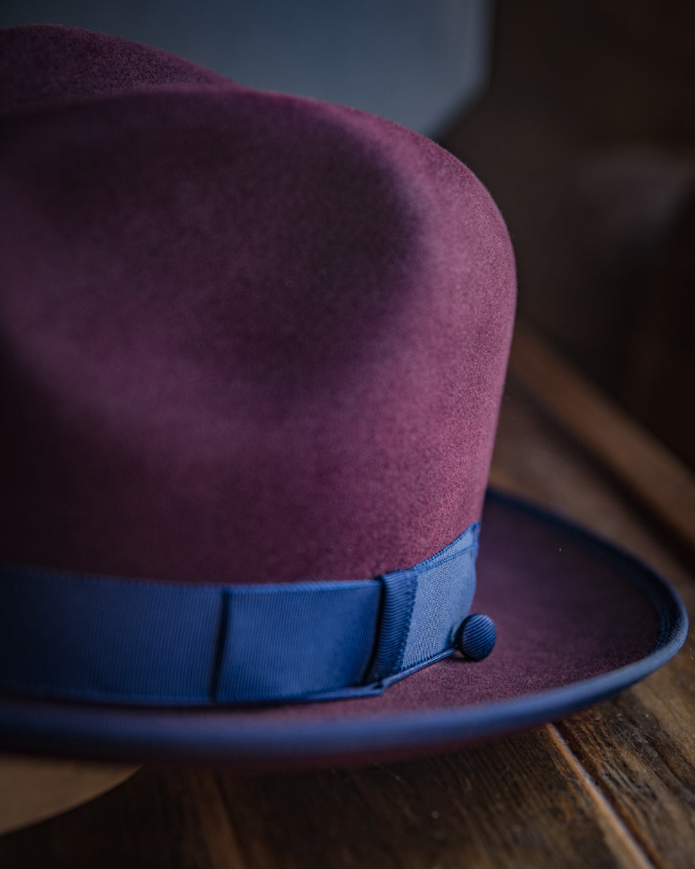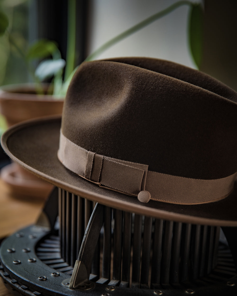 This hat is made from the best materials available. The felt is what we call dress weight, it is soft, pliable and super smooth to the touch.It comes in a 50X beaver/hare blend and a pure 100X beaver fur felt.