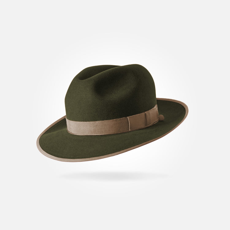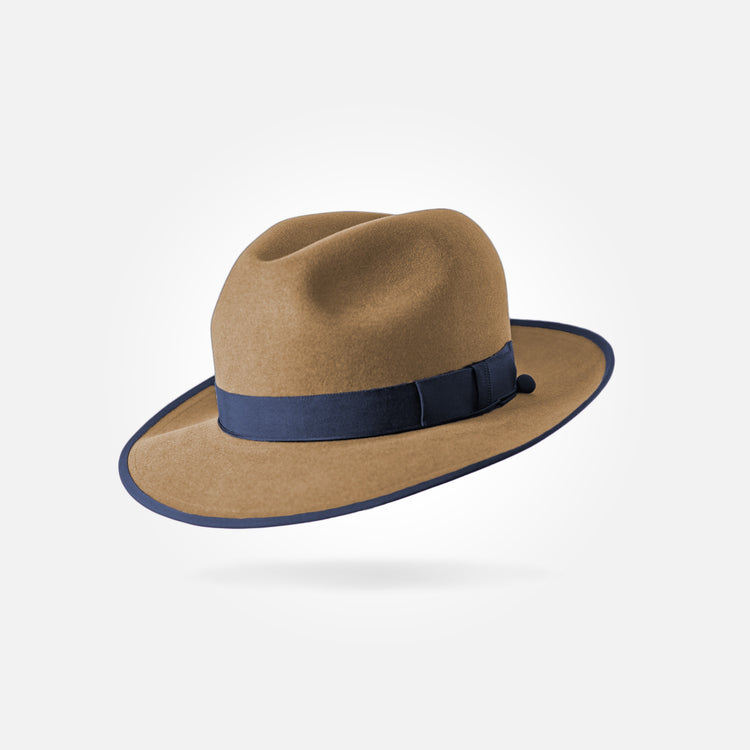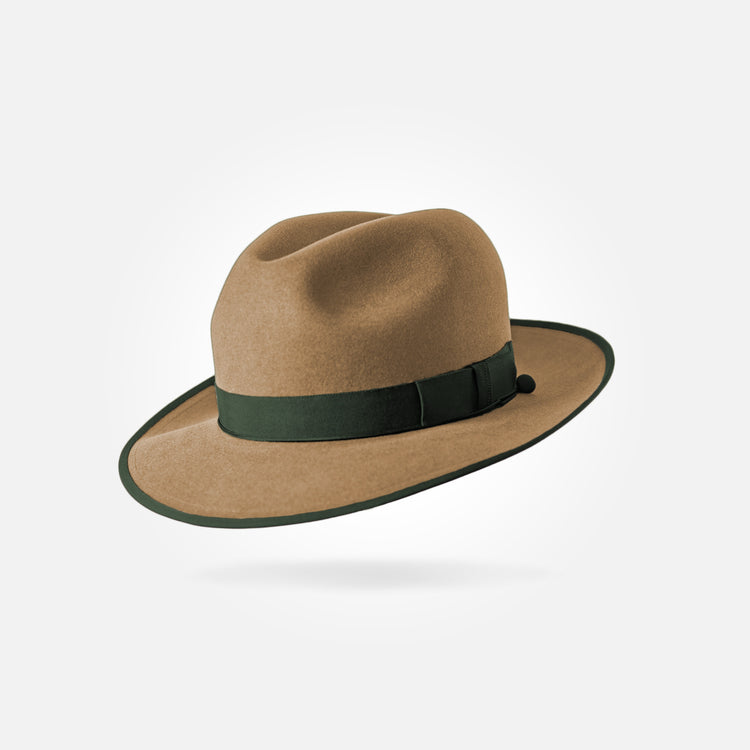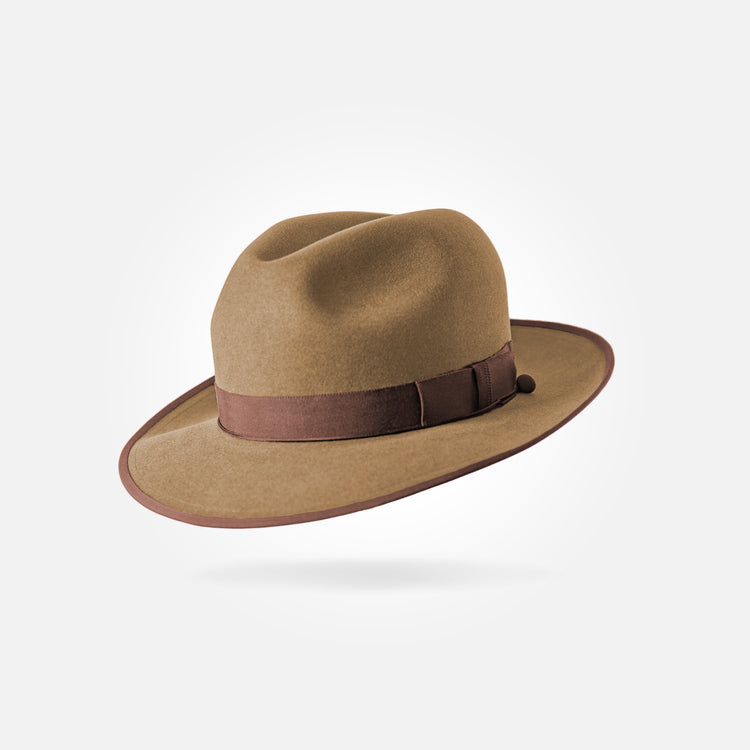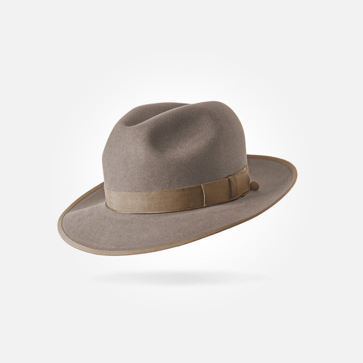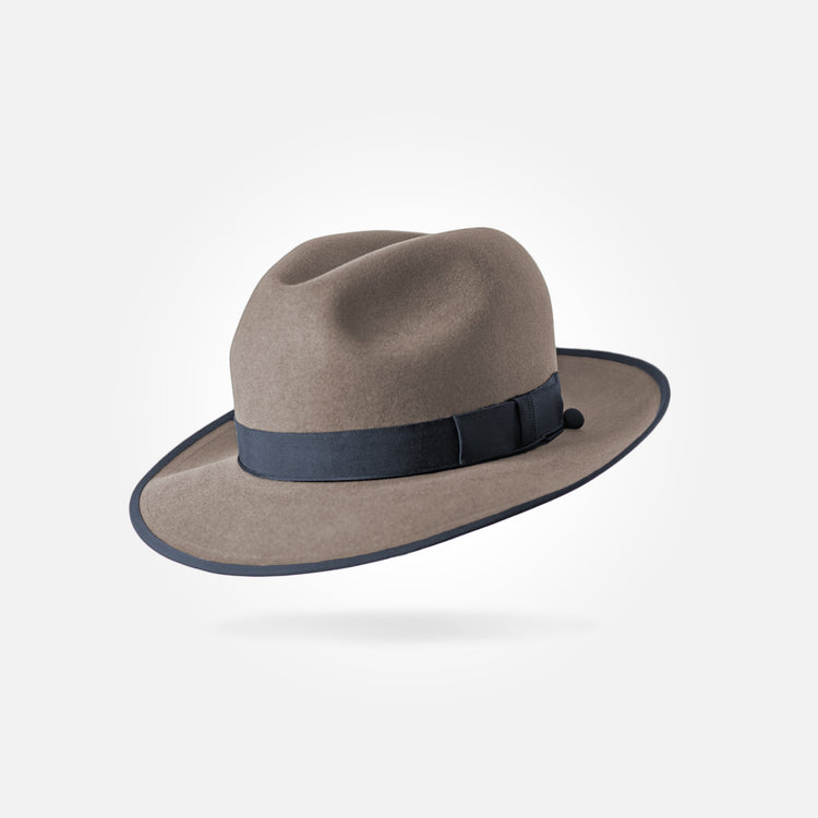 This hat is made from the best materials available. The felt is what we call dress weight, it is soft, pliable and super smooth to the touch.It comes in a 50X beaver/hare blend and a pure 100X beaver fur felt.