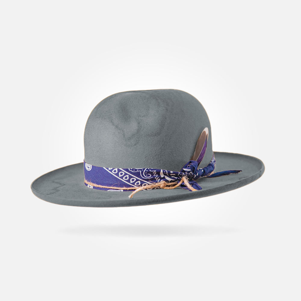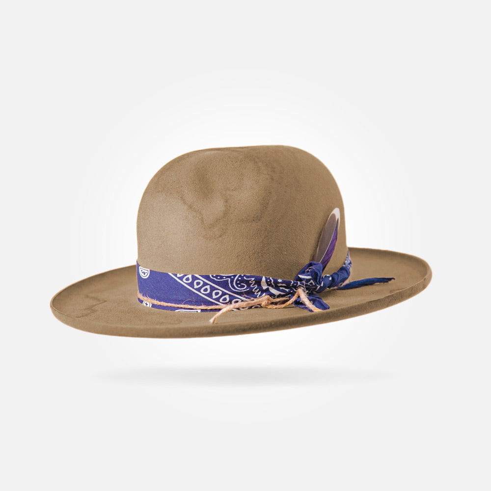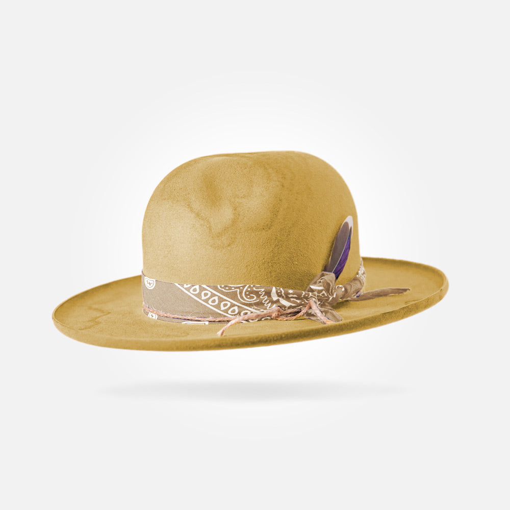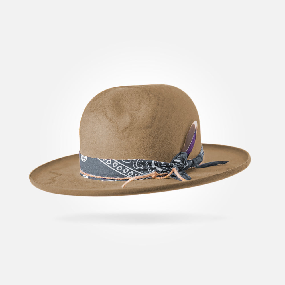 This hat is made from the best materials available. The felt used for this hat is what we call western weight.It has a sturdy, rigid brim and a smooth, pliable crown. It comes in a 50X beaver/hare blend and a pure 100X beaver fur felt.