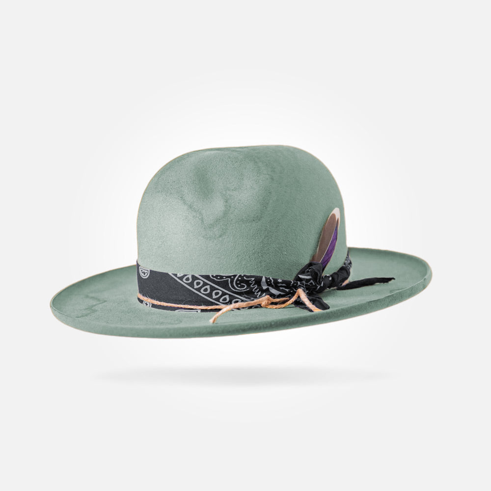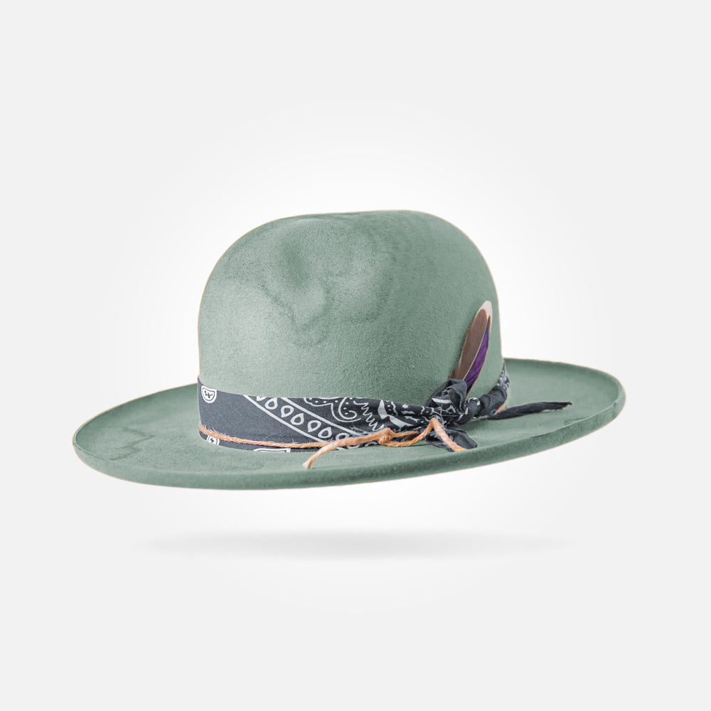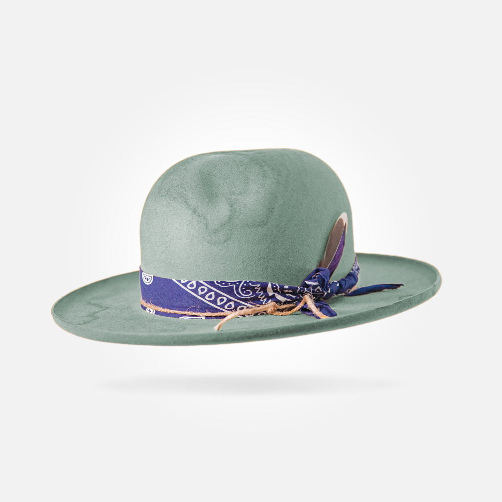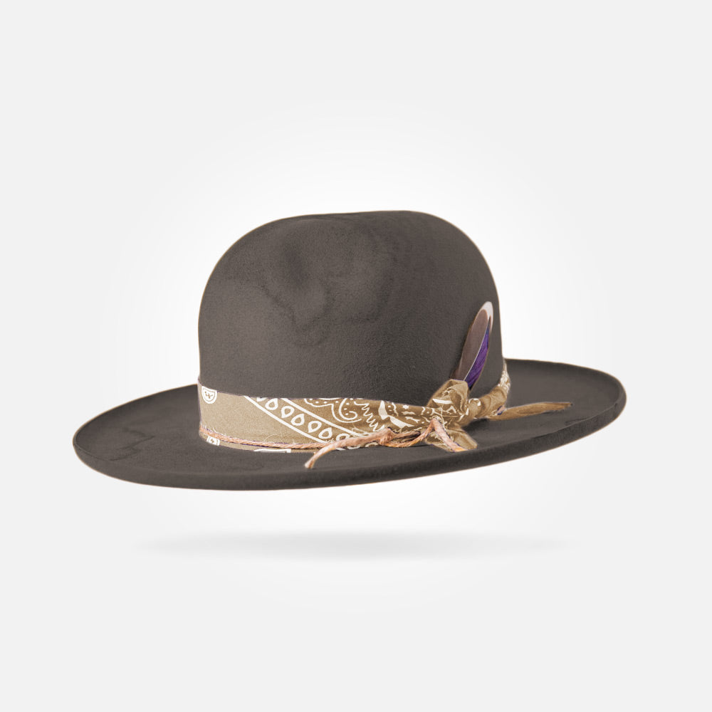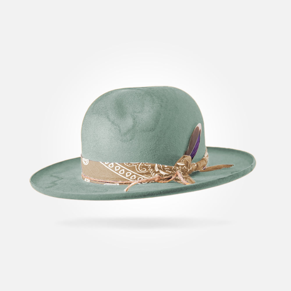This hat is made from the best materials available. The felt used for this hat is what we call western weight.It has a sturdy, rigid brim and a smooth, pliable crown. It comes in a 50X beaver/hare blend and a pure 100X beaver fur felt.