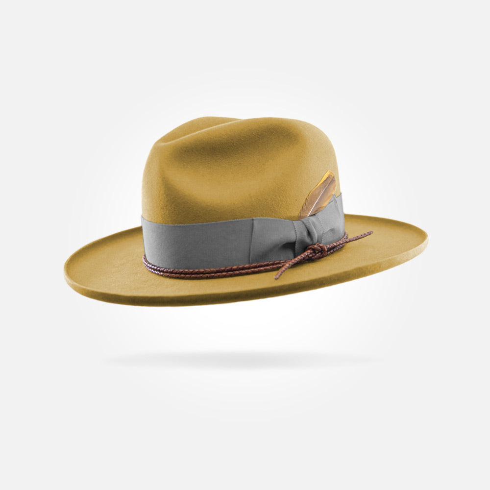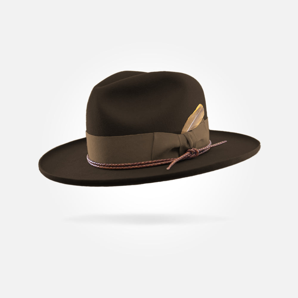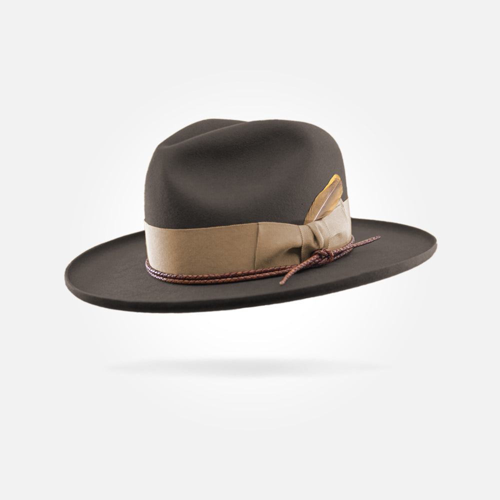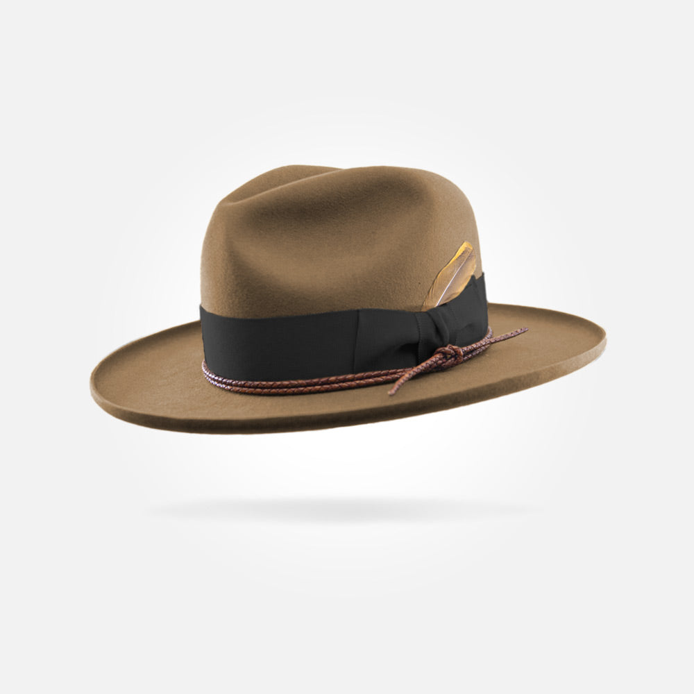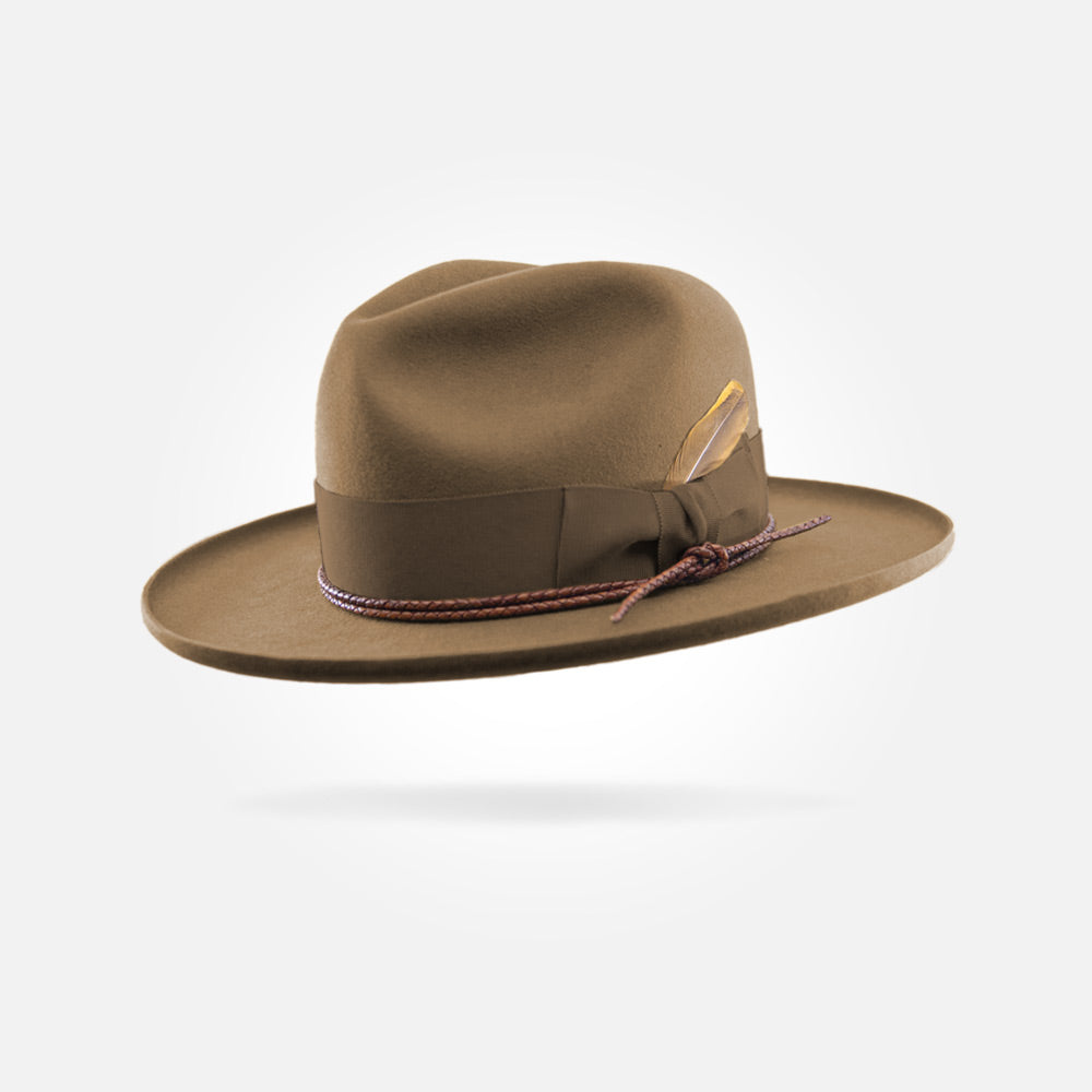 This hat is made from the best materials available. The felt used for this hat is what we call western weight. It has a sturdy, rigid brim and a smooth, pliable crown. It comes in a 50X beaver/hare blend and a pure 100X beaver fur felt.