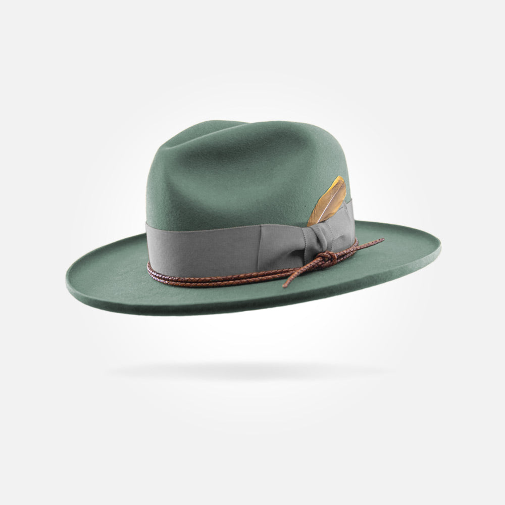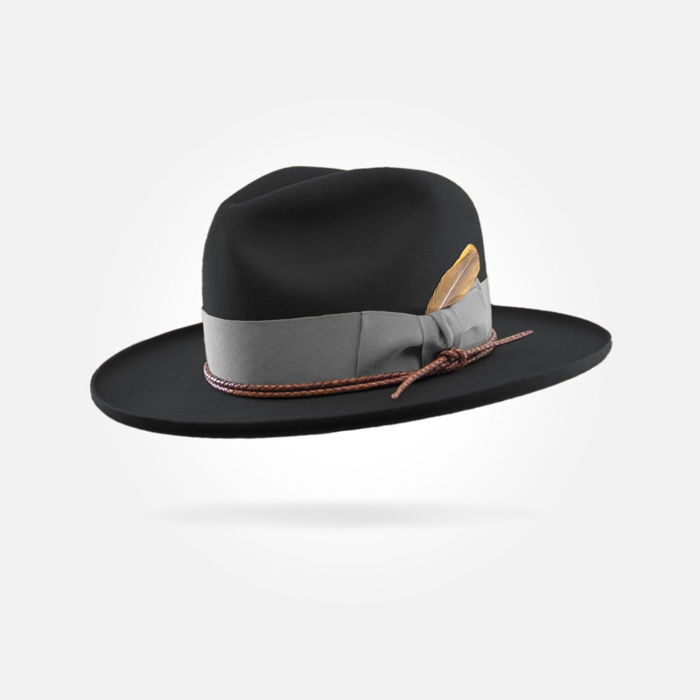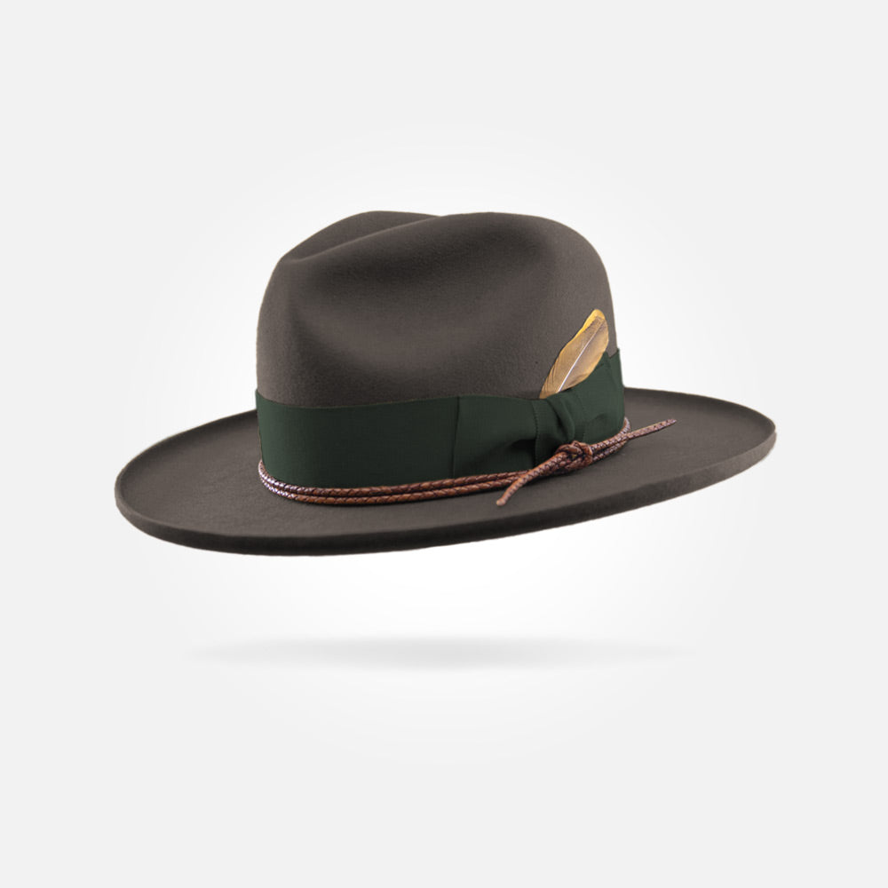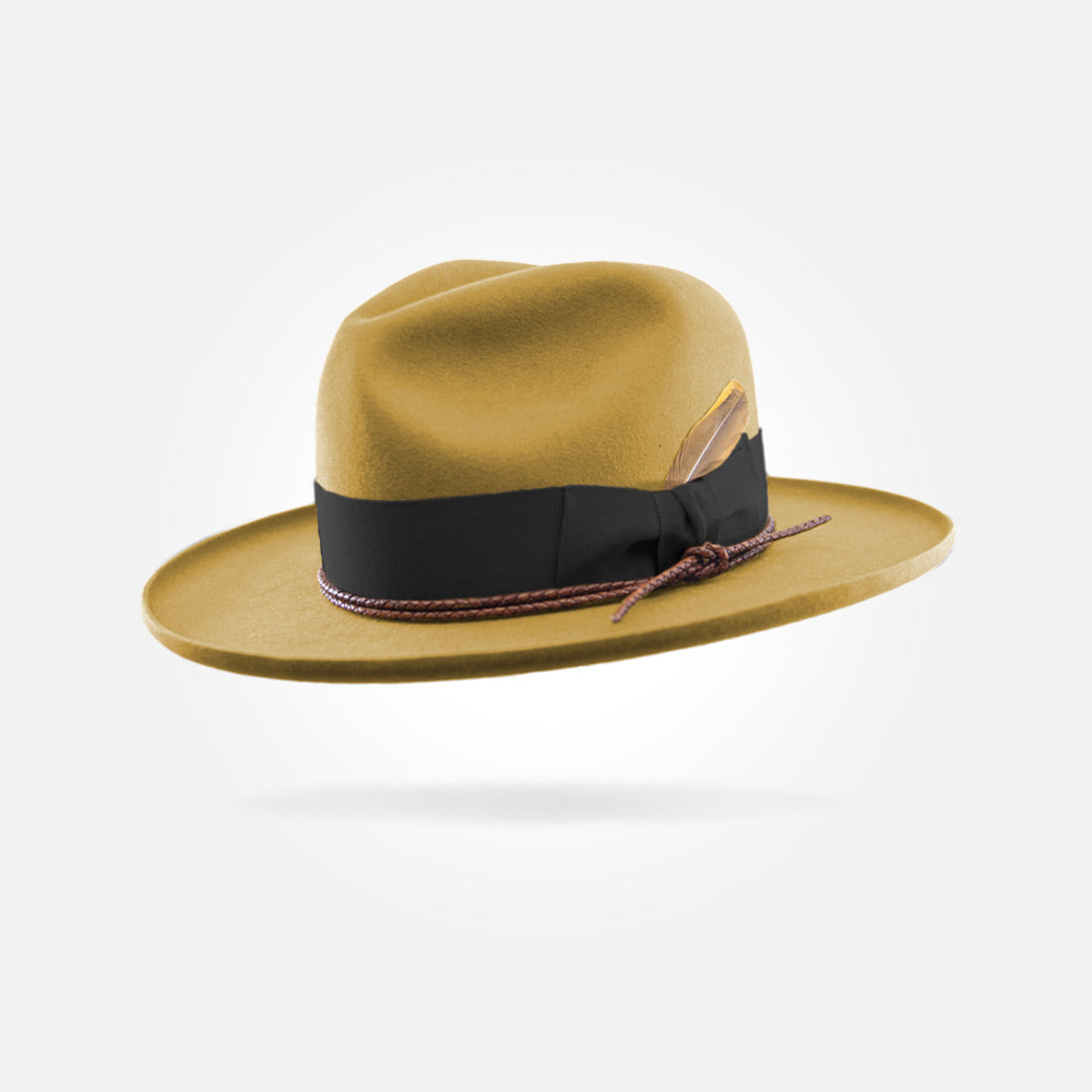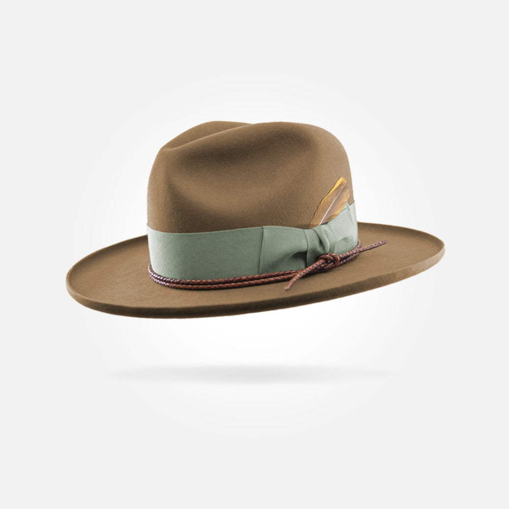 This hat is made from the best materials available. The felt used for this hat is what we call western weight. It has a sturdy, rigid brim and a smooth, pliable crown. It comes in a 50X beaver/hare blend and a pure 100X beaver fur felt.