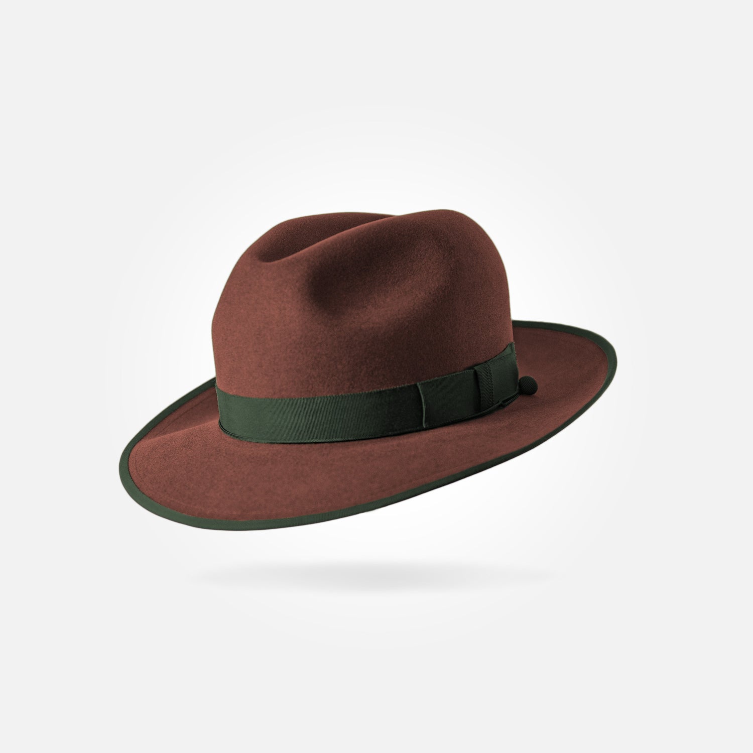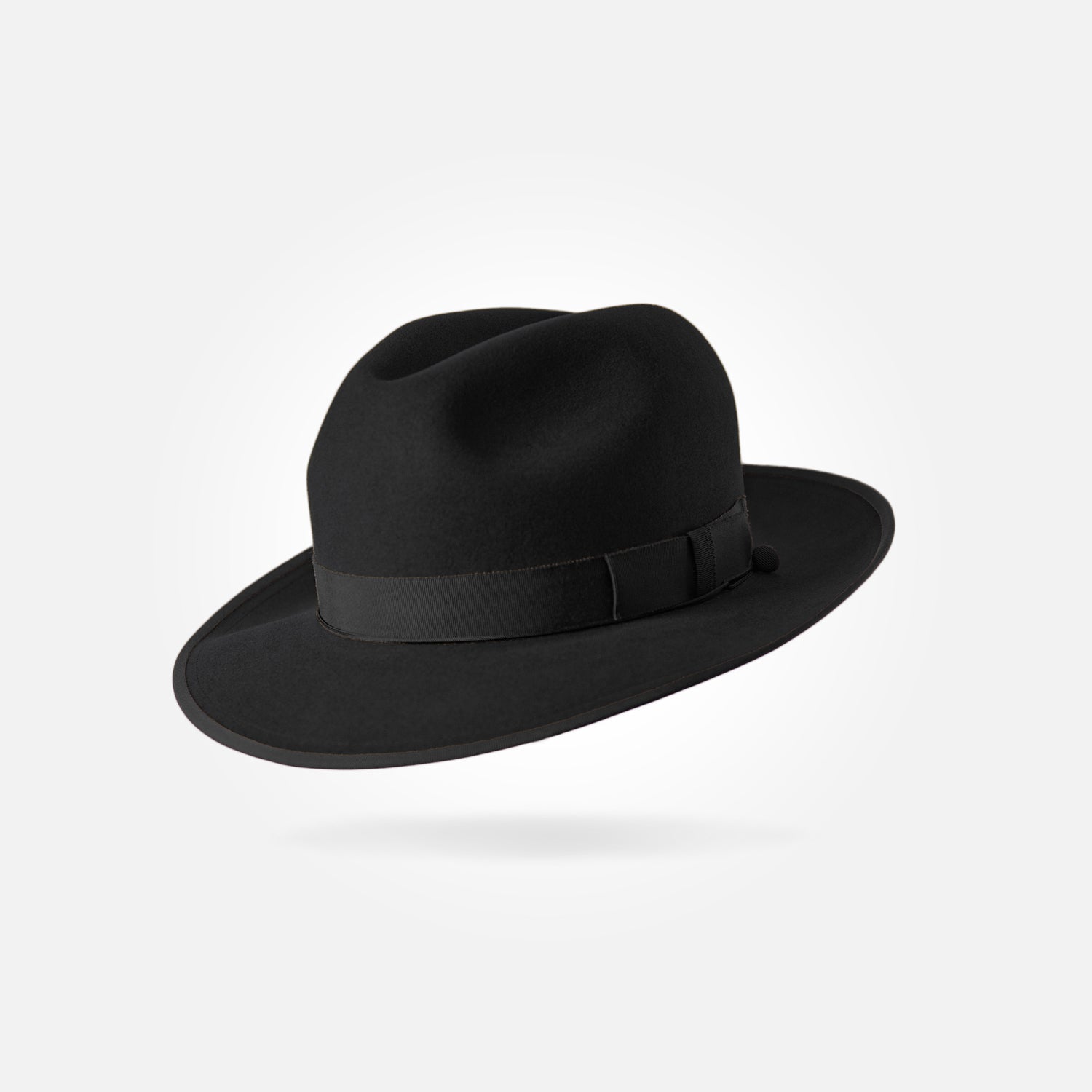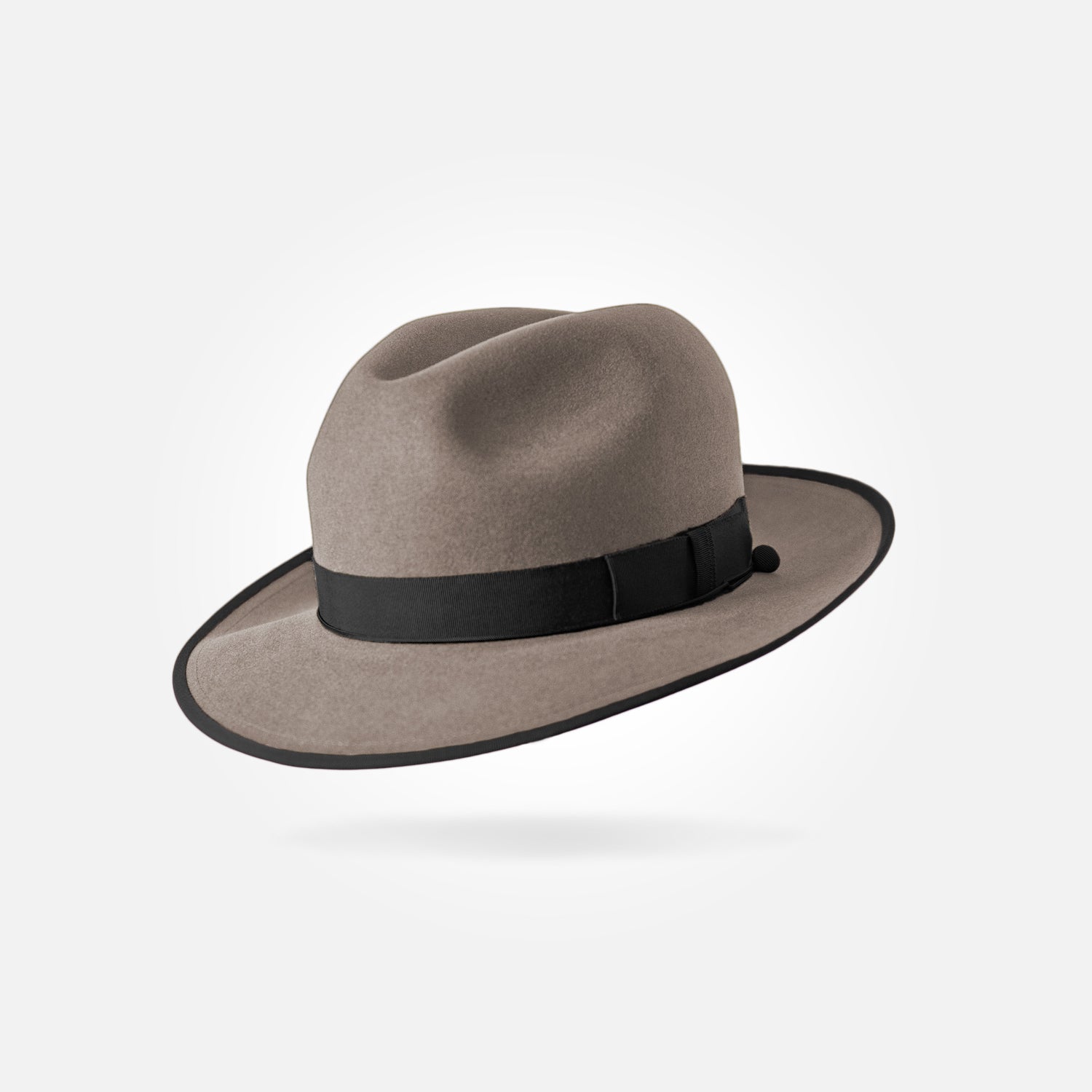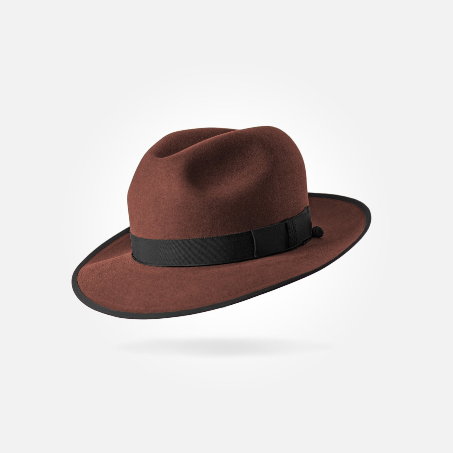 This is a medium height classic centre dent fedora with a 6,5 cm / 2.55 in bound snap brim. It features a 25 mm modern grosgrain hatband and a fully functional wind cord.