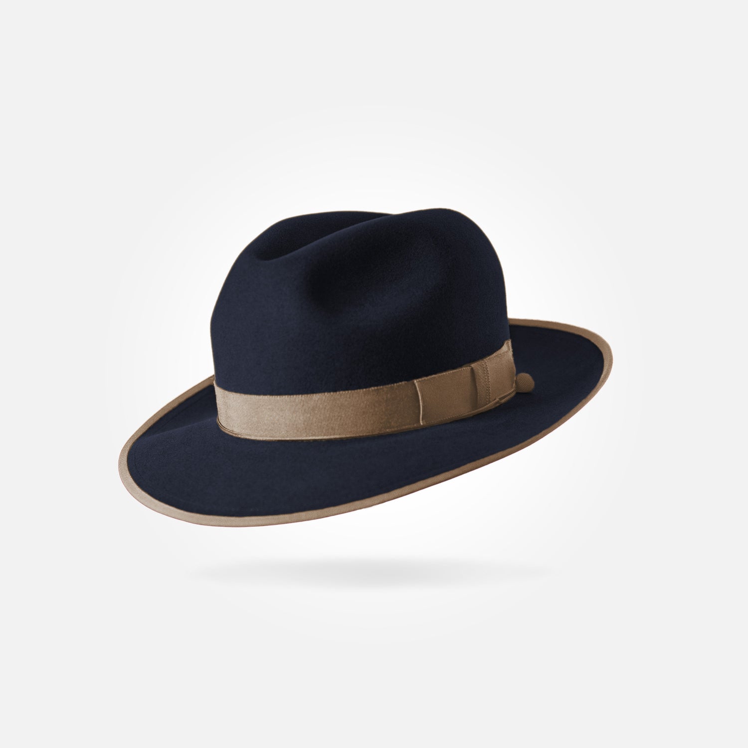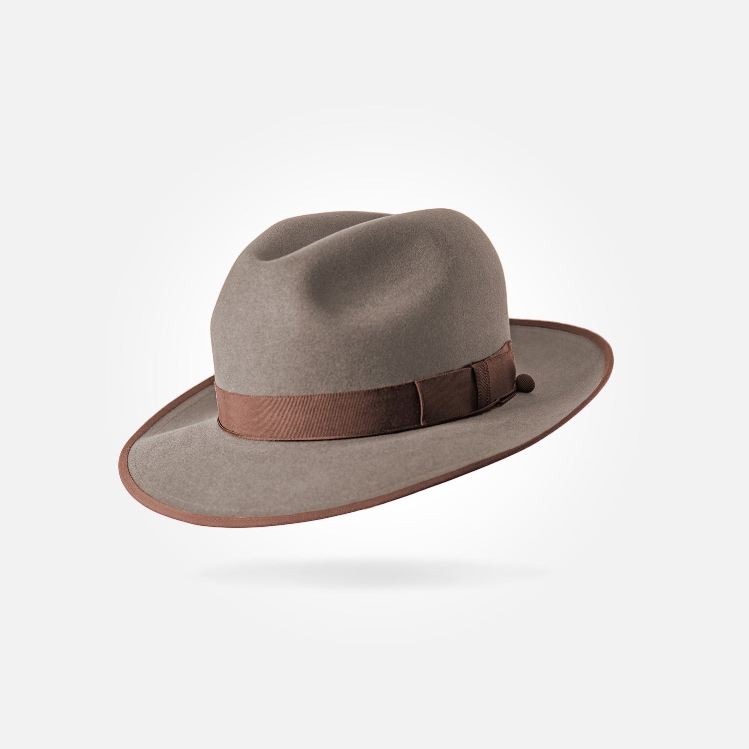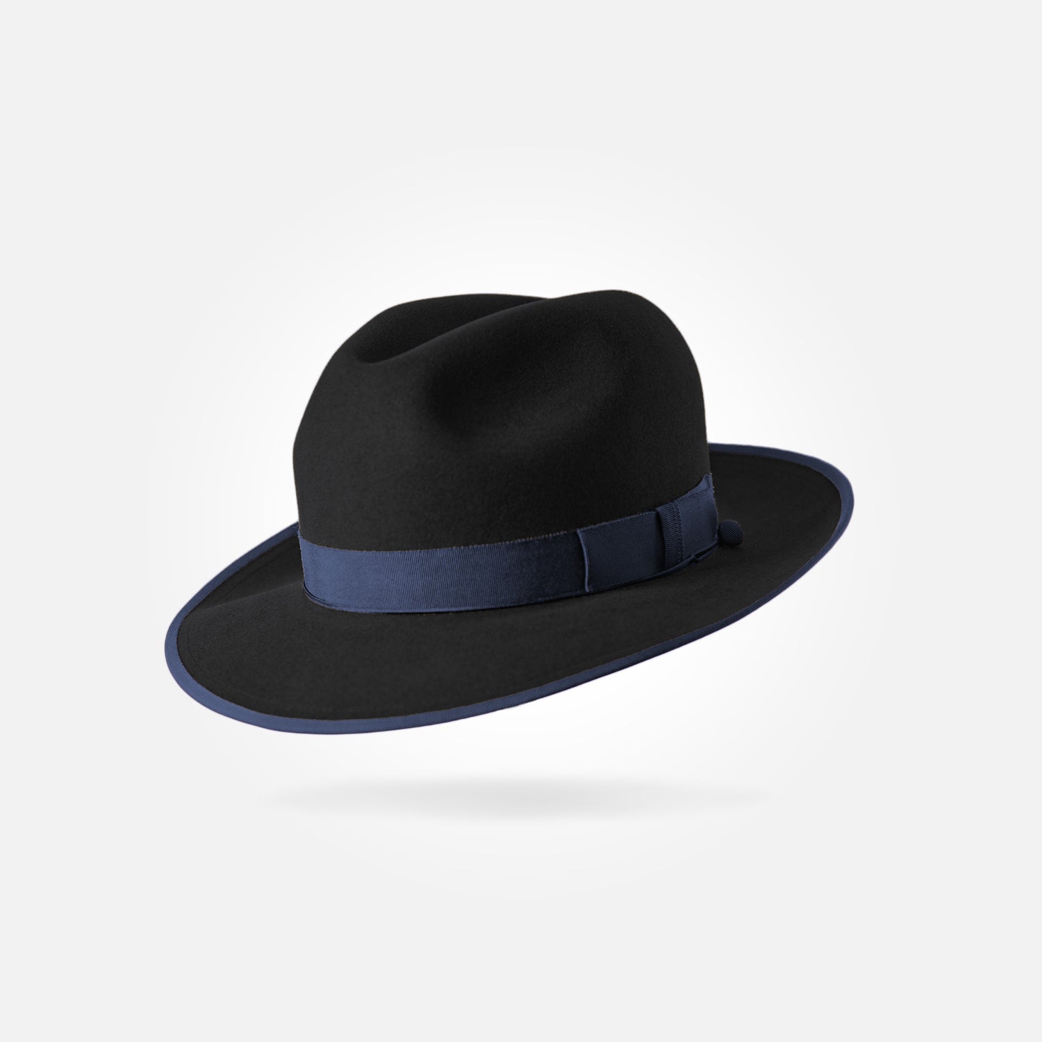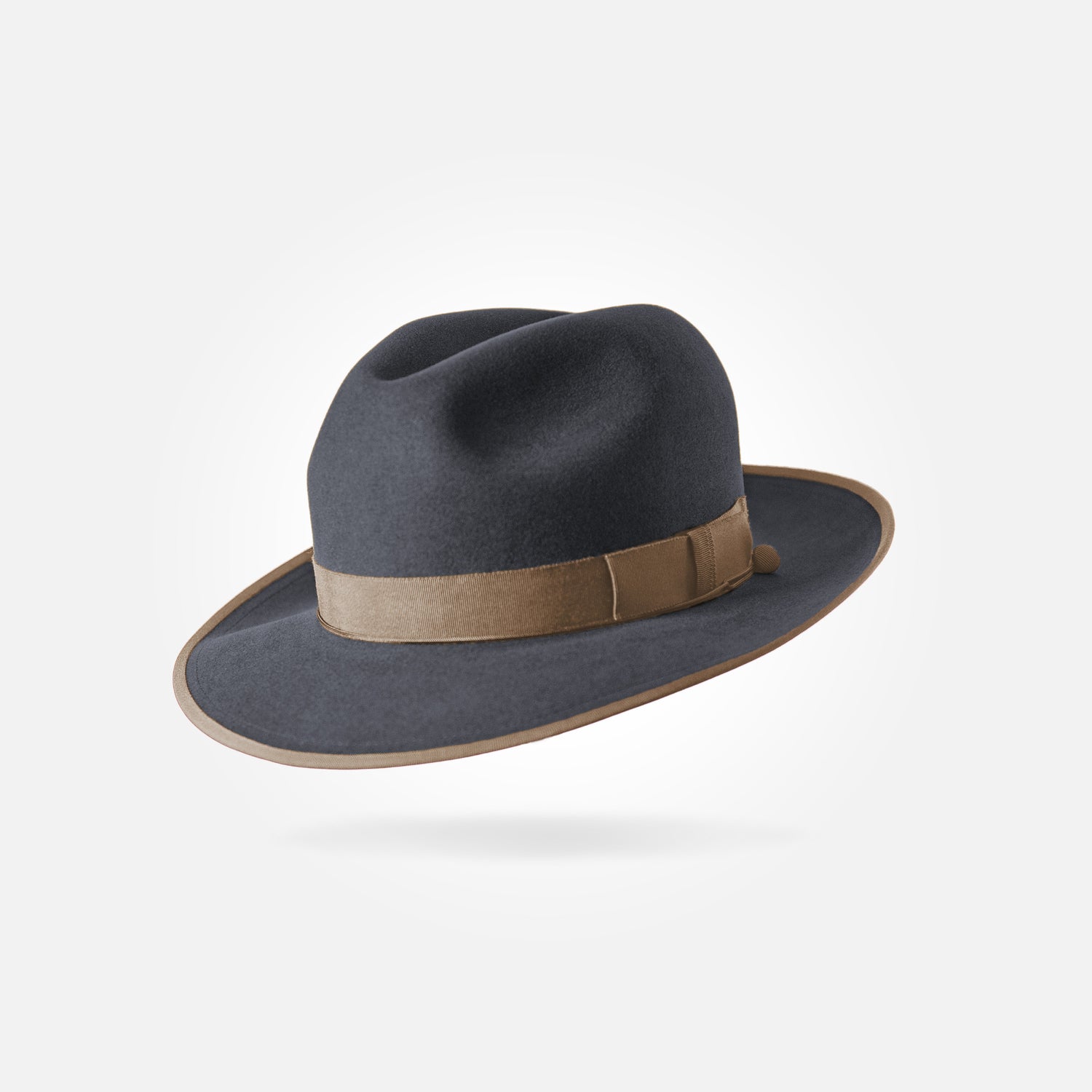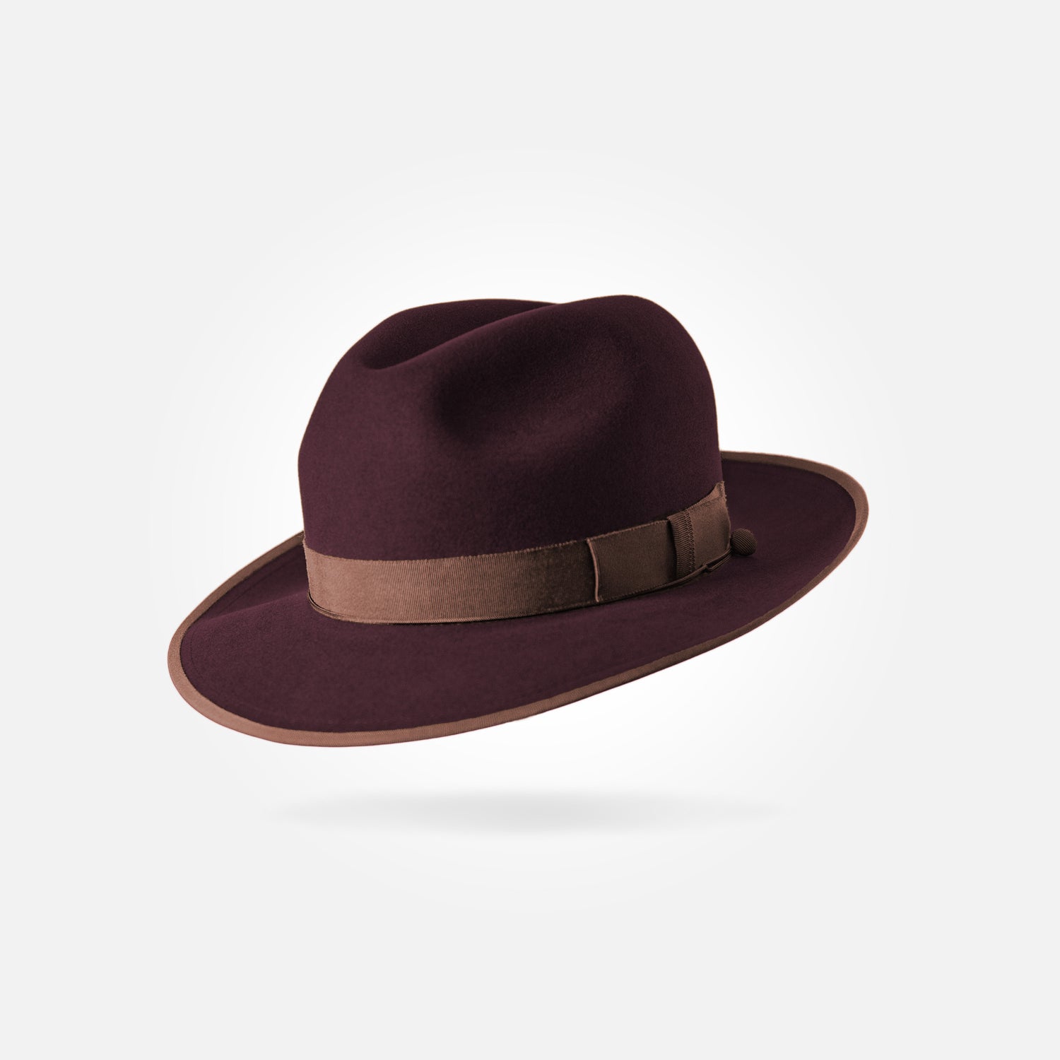This is a medium height classic centre dent fedora with a 6,5 cm / 2.55 in bound snap brim. It features a 25 mm modern grosgrain hatband and a fully functional wind cord.