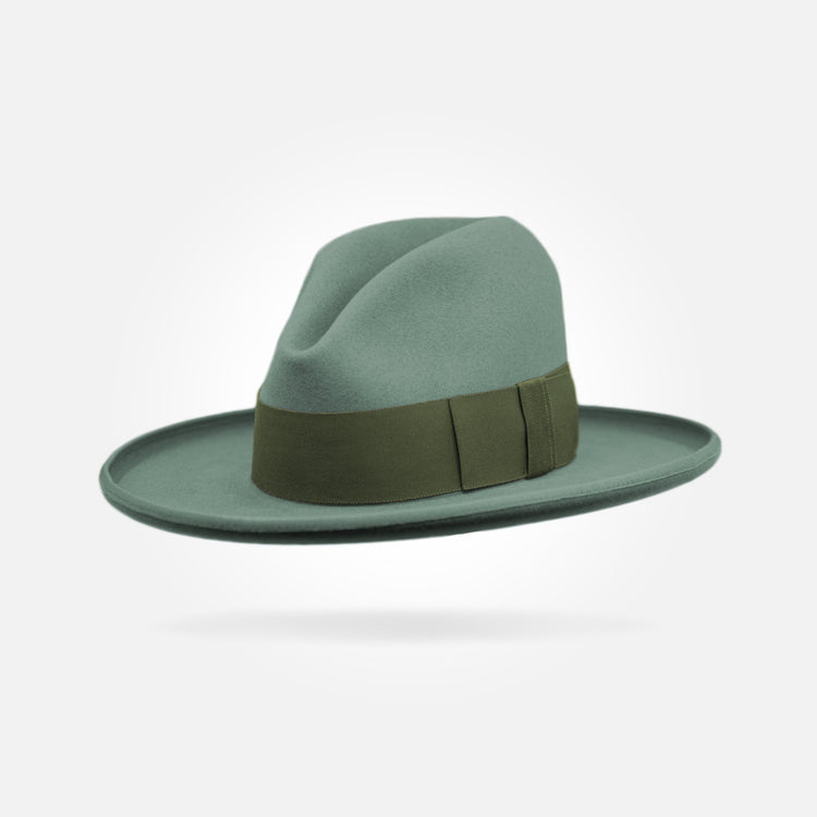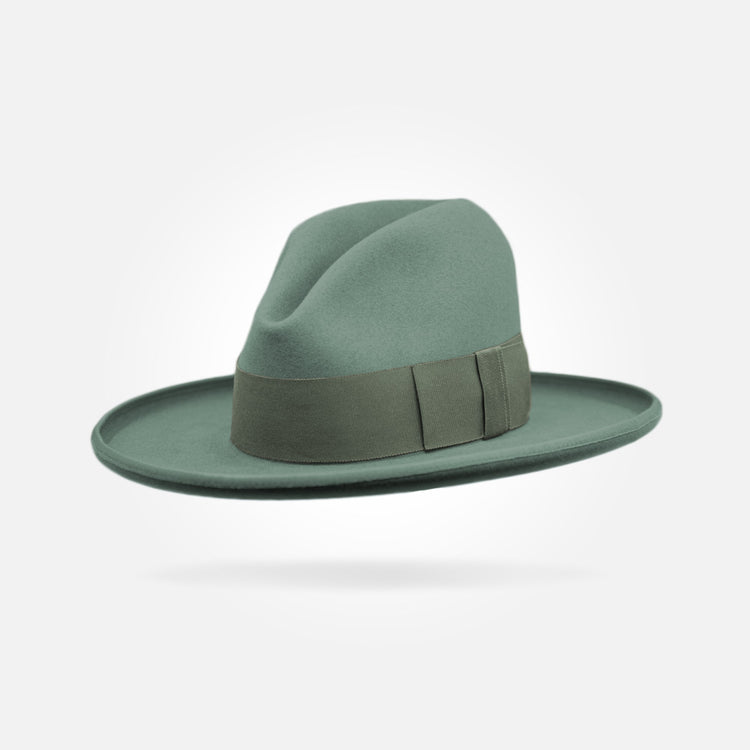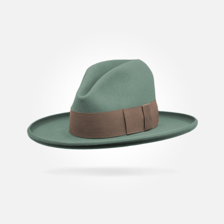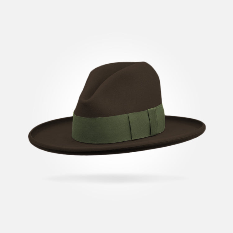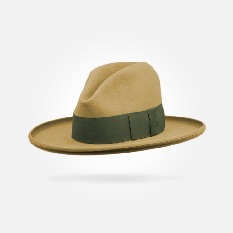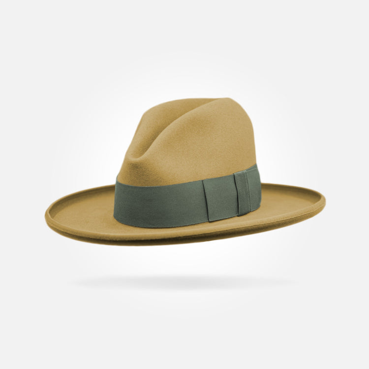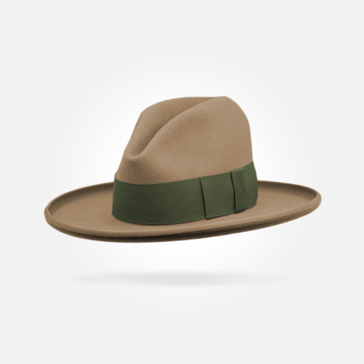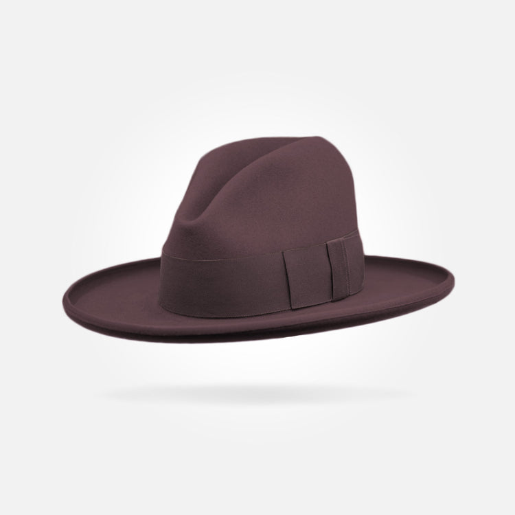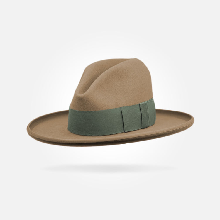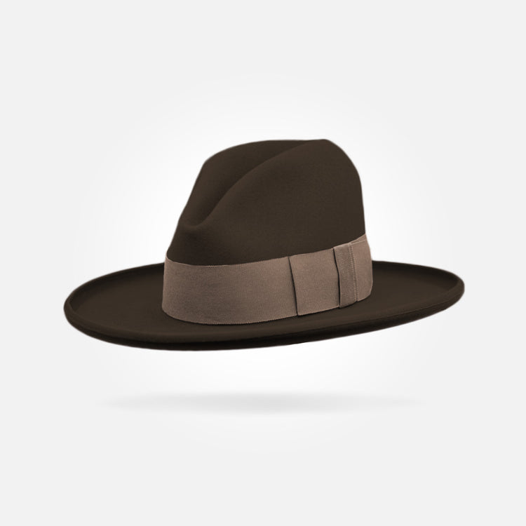 This hat is made from the best materials available. The felt used for this hat is what we call western weight. It has a sturdy, rigid brim and a smooth, pliable crown. It comes in a 50X beaver/hare blend and a pure 100X beaver fur felt.
