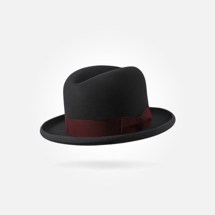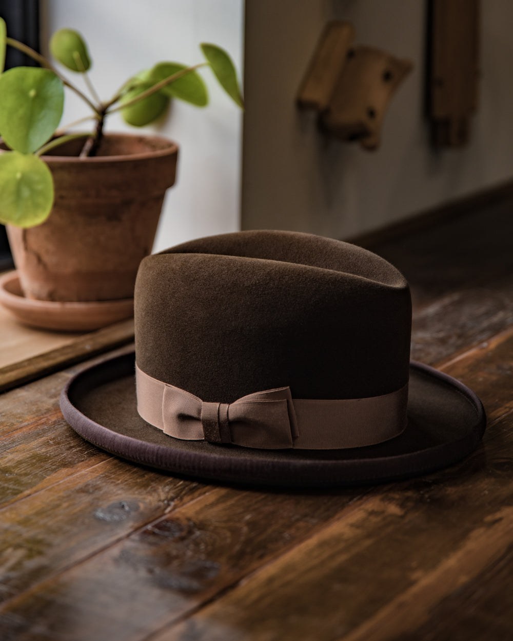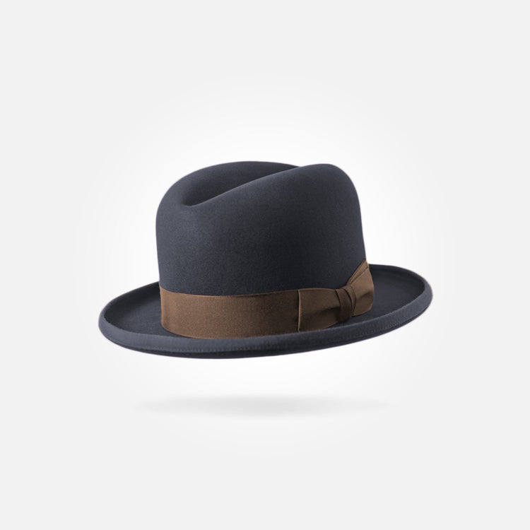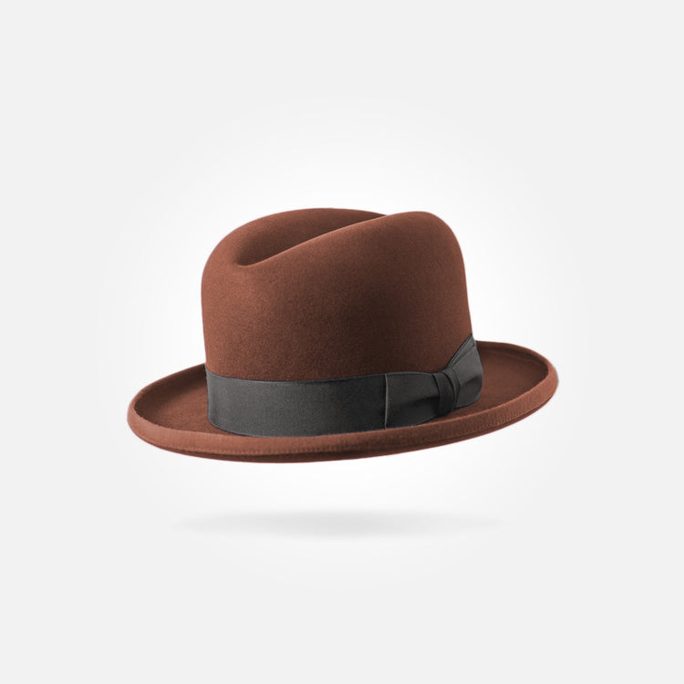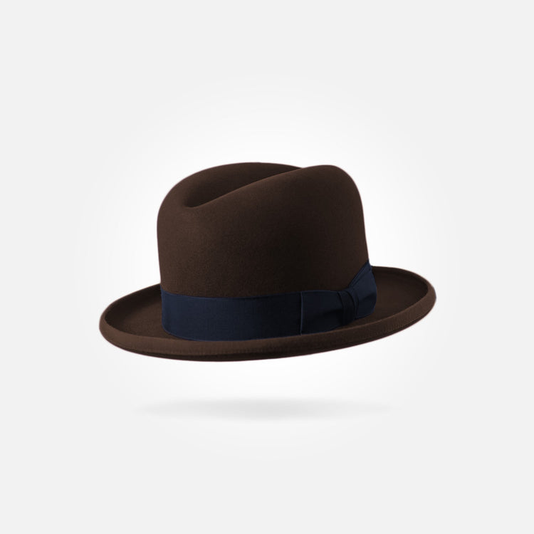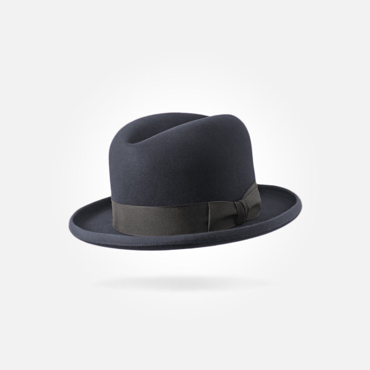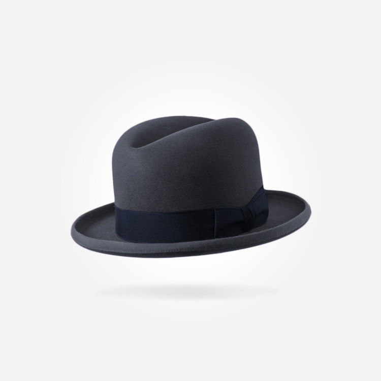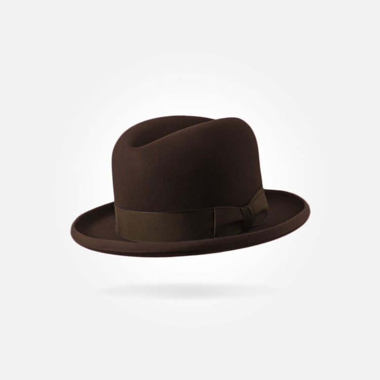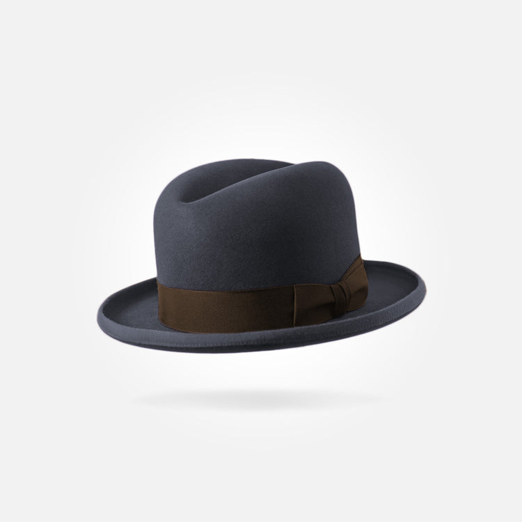 This is a tall homburg with a 6 cm / 2.36 in bound pencil roll brim.