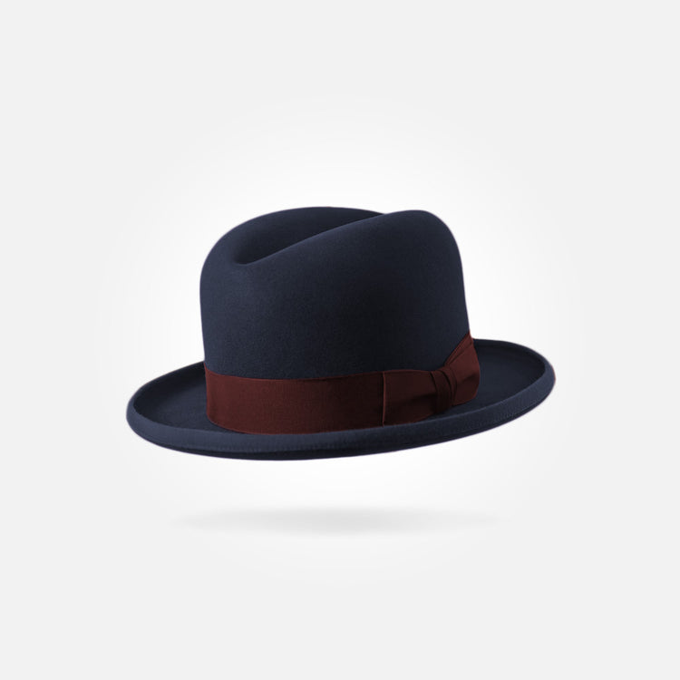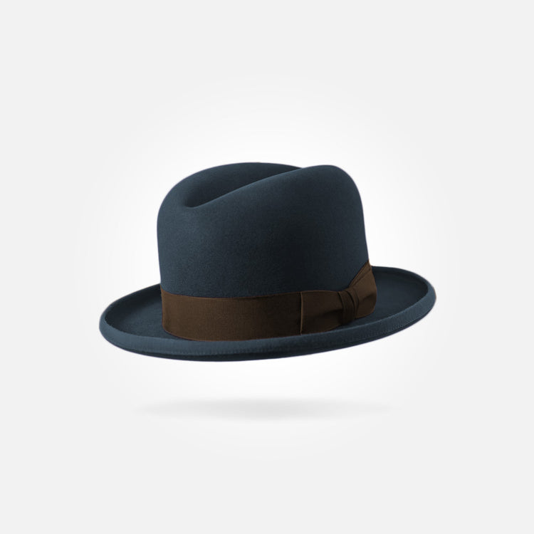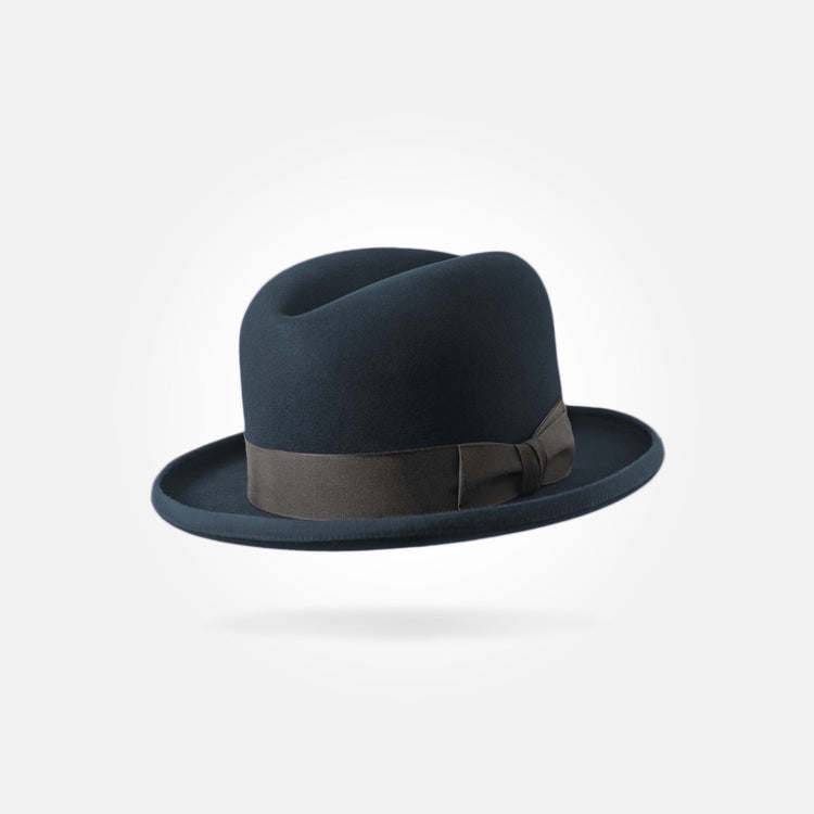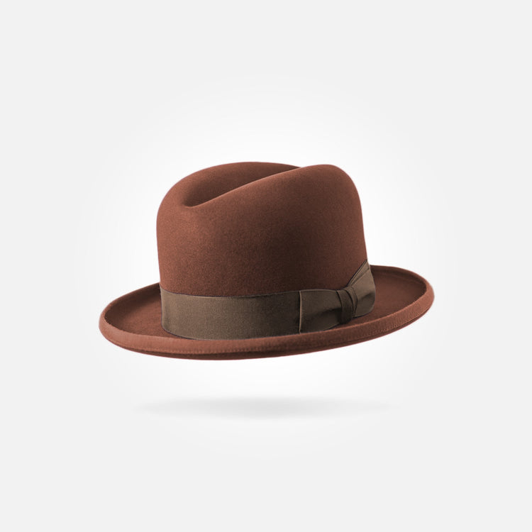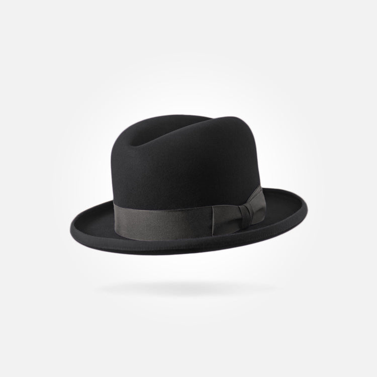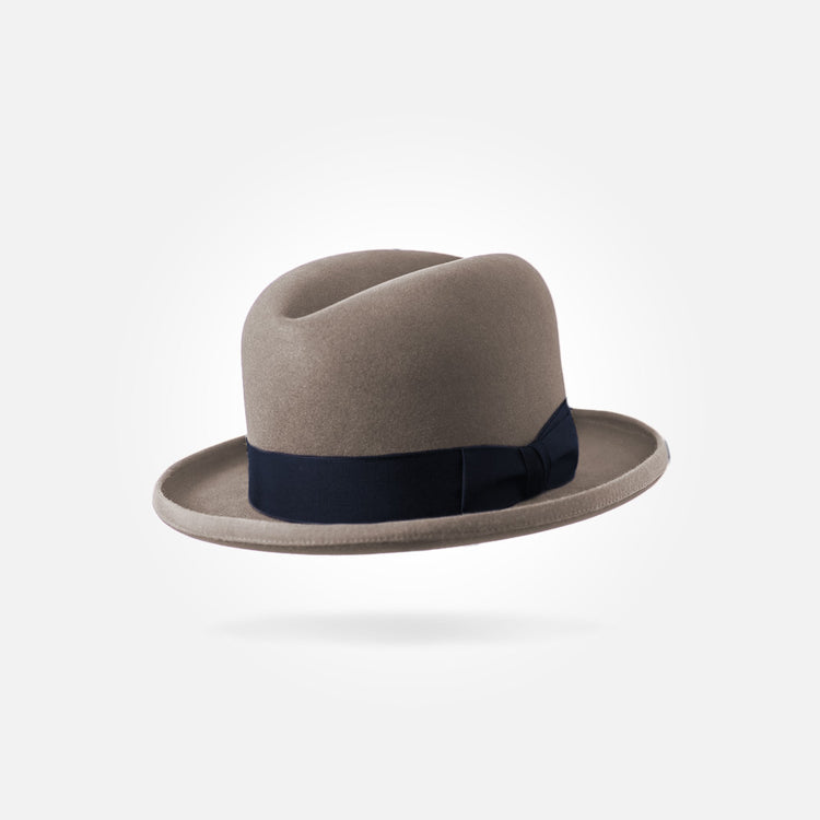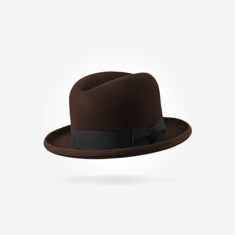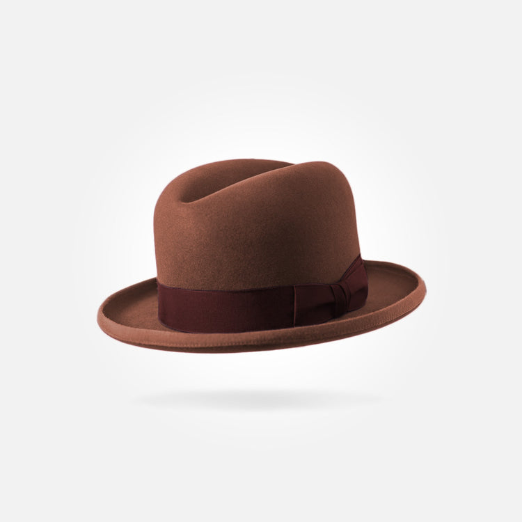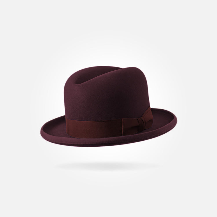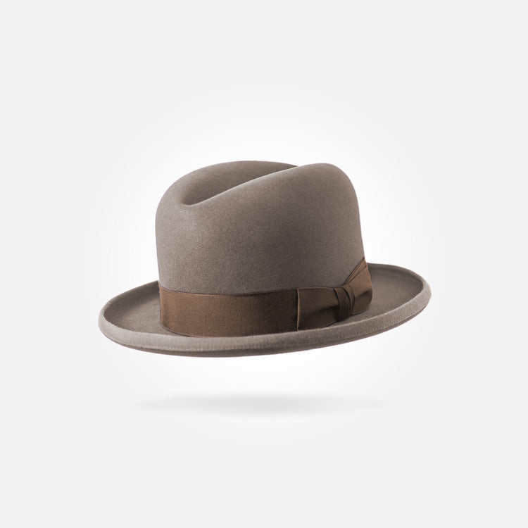 This is a tall homburg with a 6 cm / 2.36 in bound pencil roll brim.