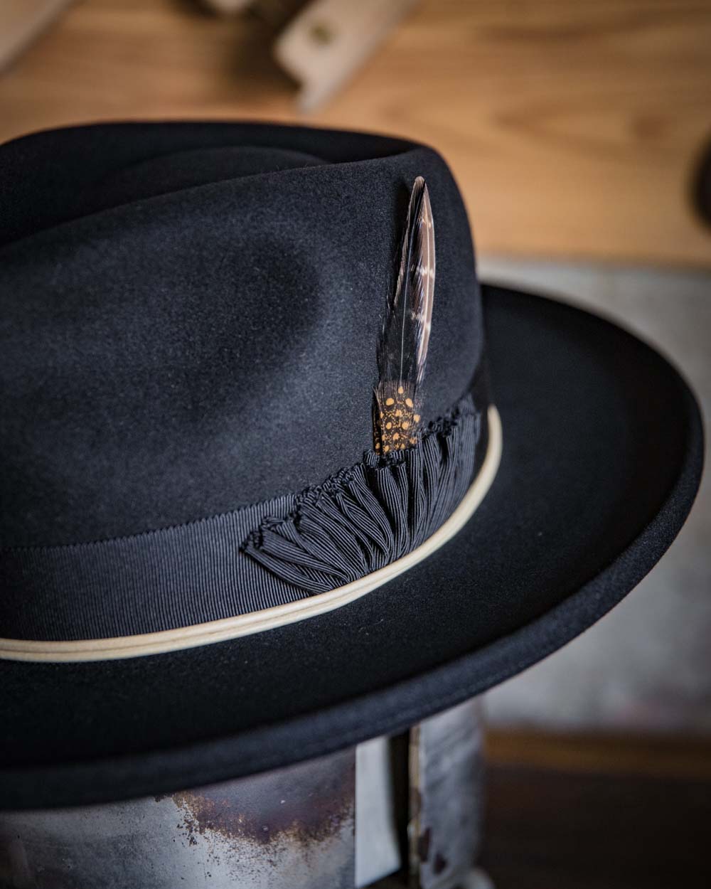 It can be made in a 50X beaver/hare blend or a pure 100X beaver fur felt.