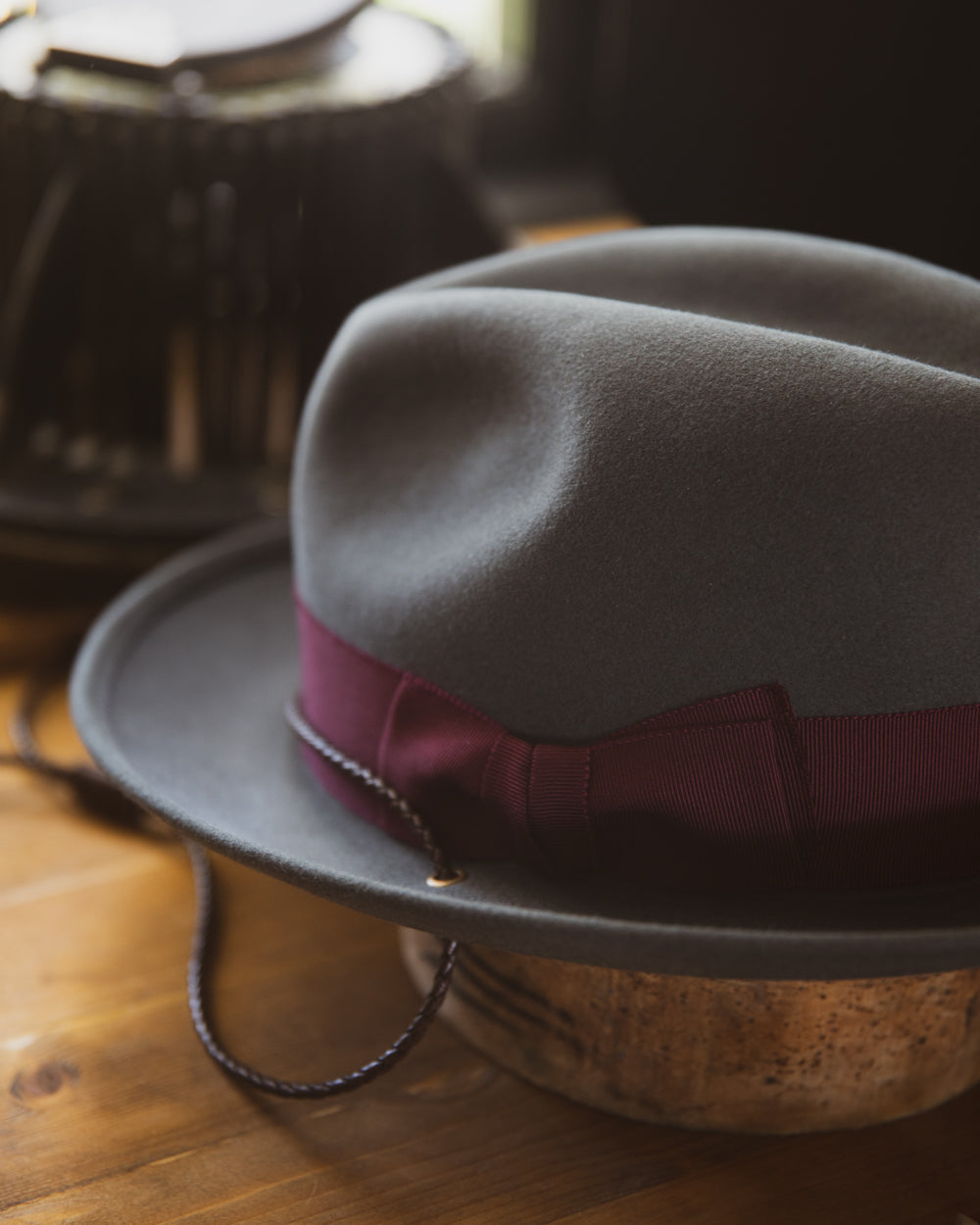 It comes in a 50X beaver/hare blend and a pure 100X beaver fur felt.
