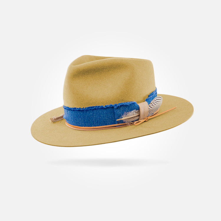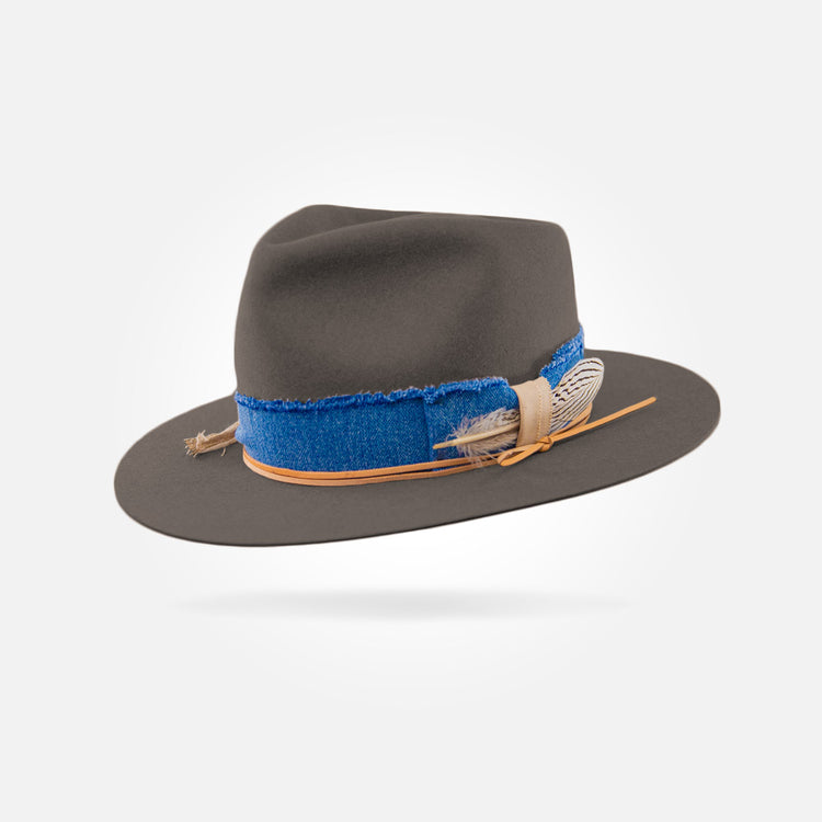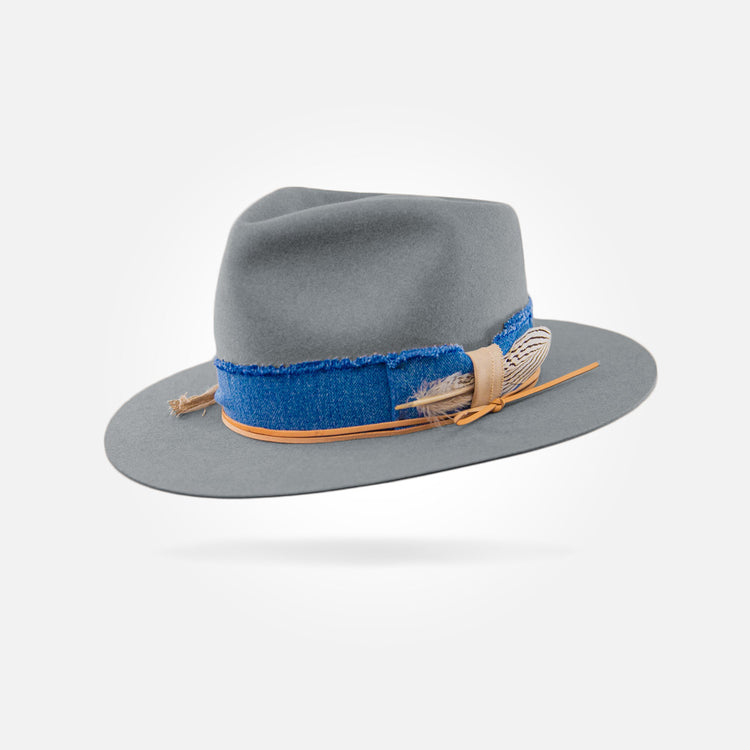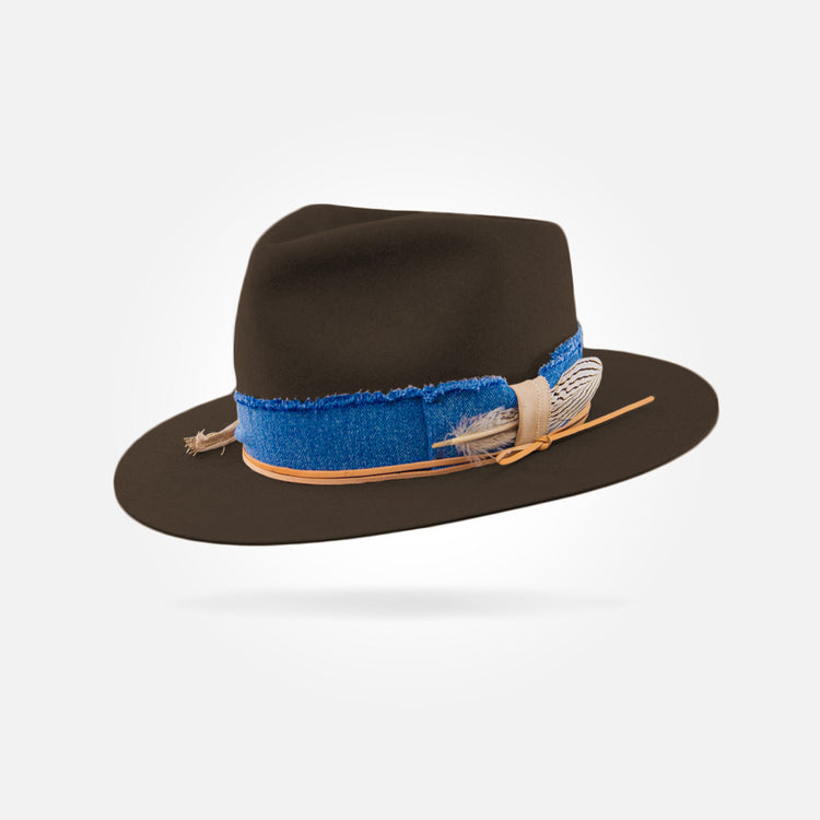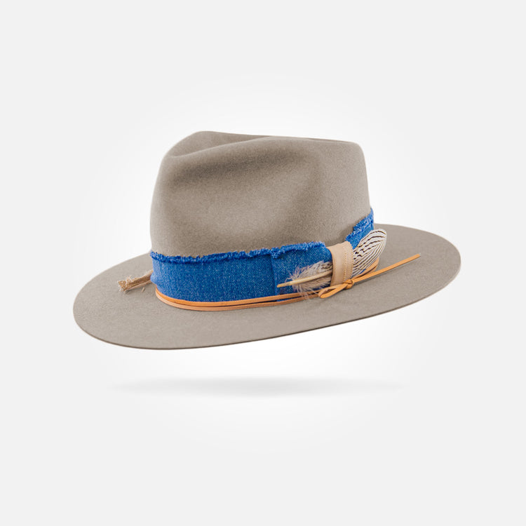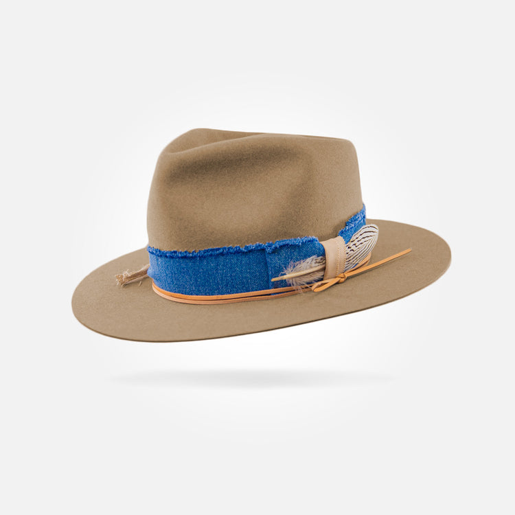 This hat is made from the best materials available. The felt used for this hat is what we call western weight. It has a sturdy, rigid brim and a smooth, pliable crown. It comes in a 50X beaver/hare blend and a pure 100X beaver fur felt.